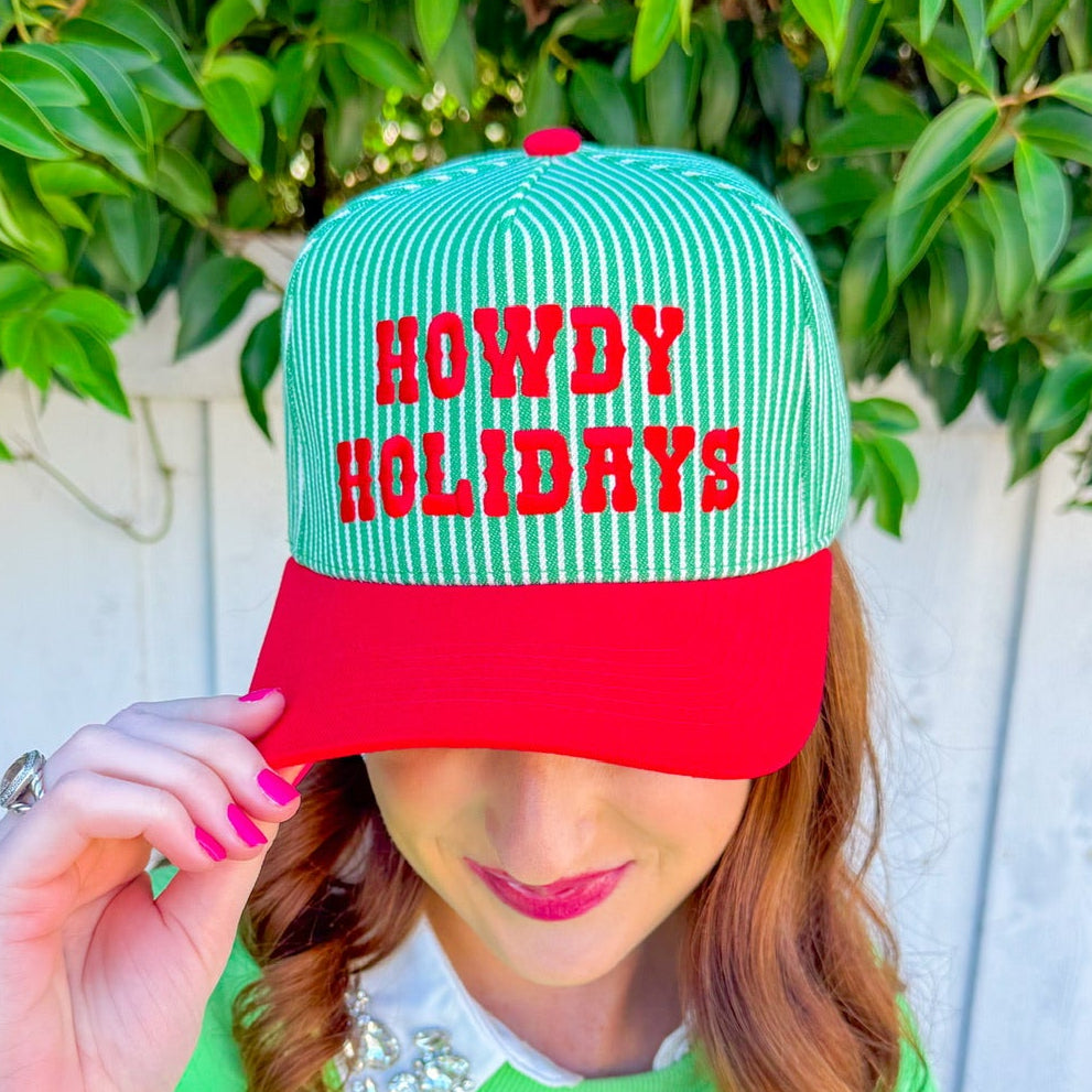 Howdy Holidays Canvas Hat - Green Stripe/Red