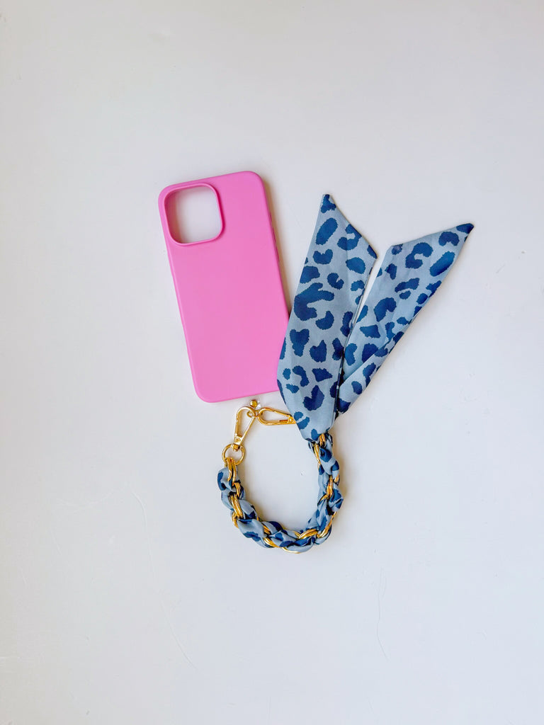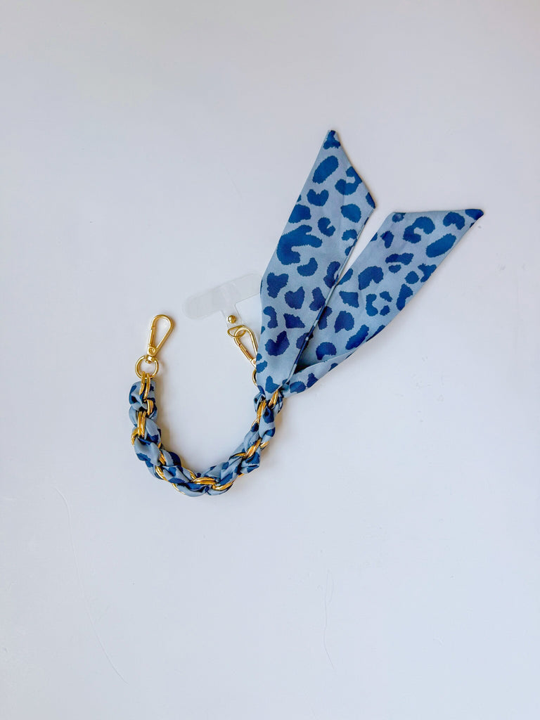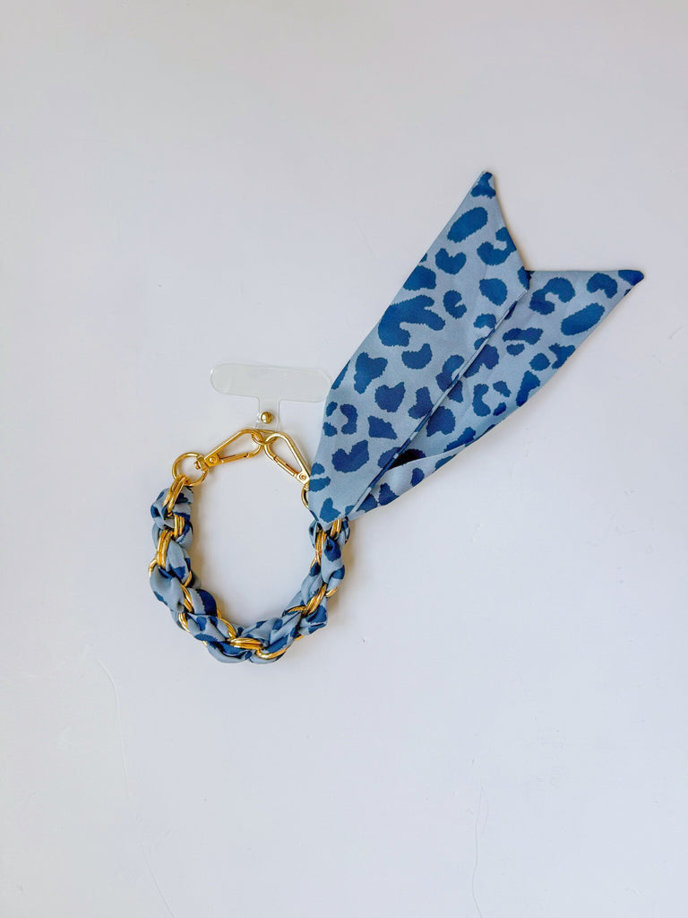 Iphone Scarf Lanyard Bracelet - Light Blue Cheetah