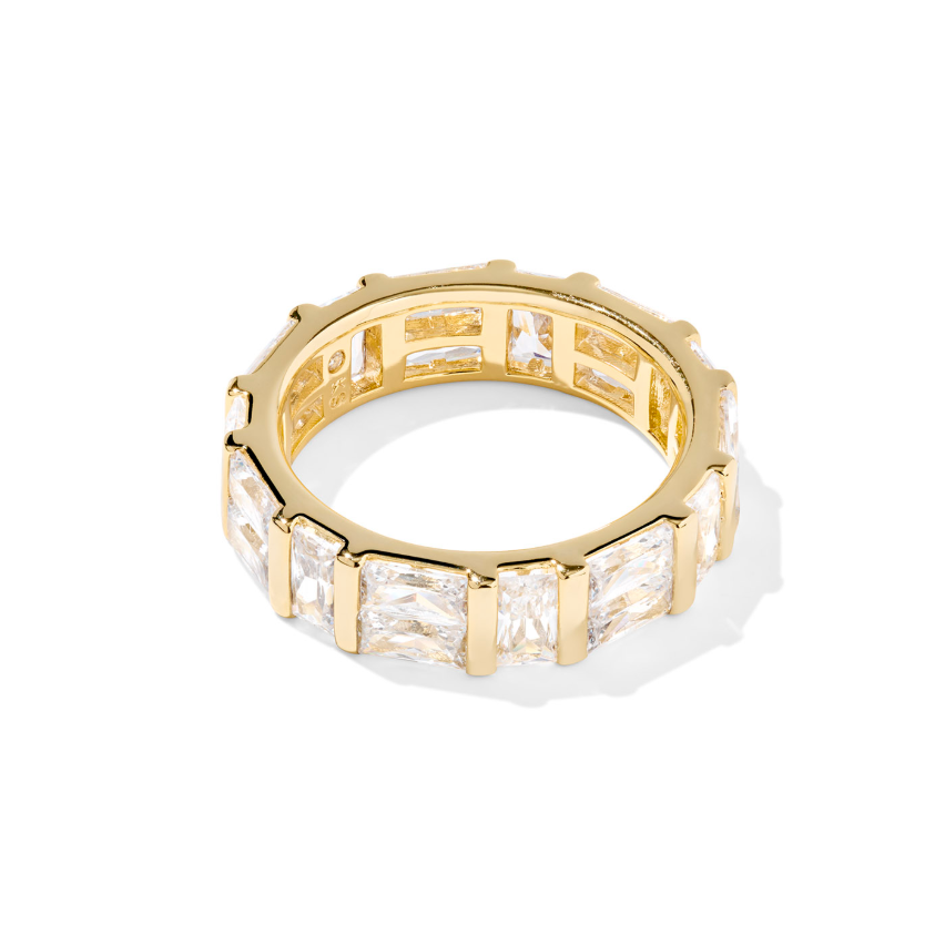 Delicate elegance is at your fingertips with the Jamie Gold Band Ring. Featuring bezel-set baguette crystal detailing and high-shine metal, this ring is a must-have for any occasion. Style it with the Jamie Gold Hoop Earrings for a chic, coordinated ensemble.