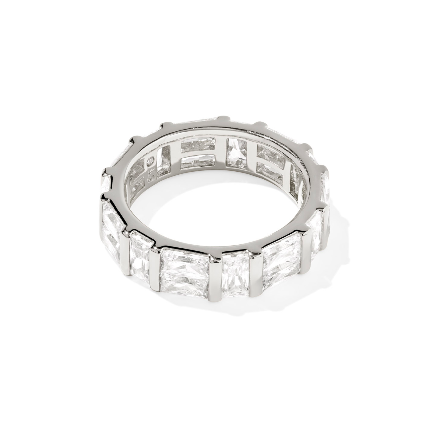 Delicate elegance is at your fingertips with the Jamie Silver Band Ring. Featuring bezel-set baguette crystal detailing and high-shine metal, this ring is a must-have for any occasion. Style it with the Jamie Silver Hoop Earrings for a chic, coordinated ensemble.