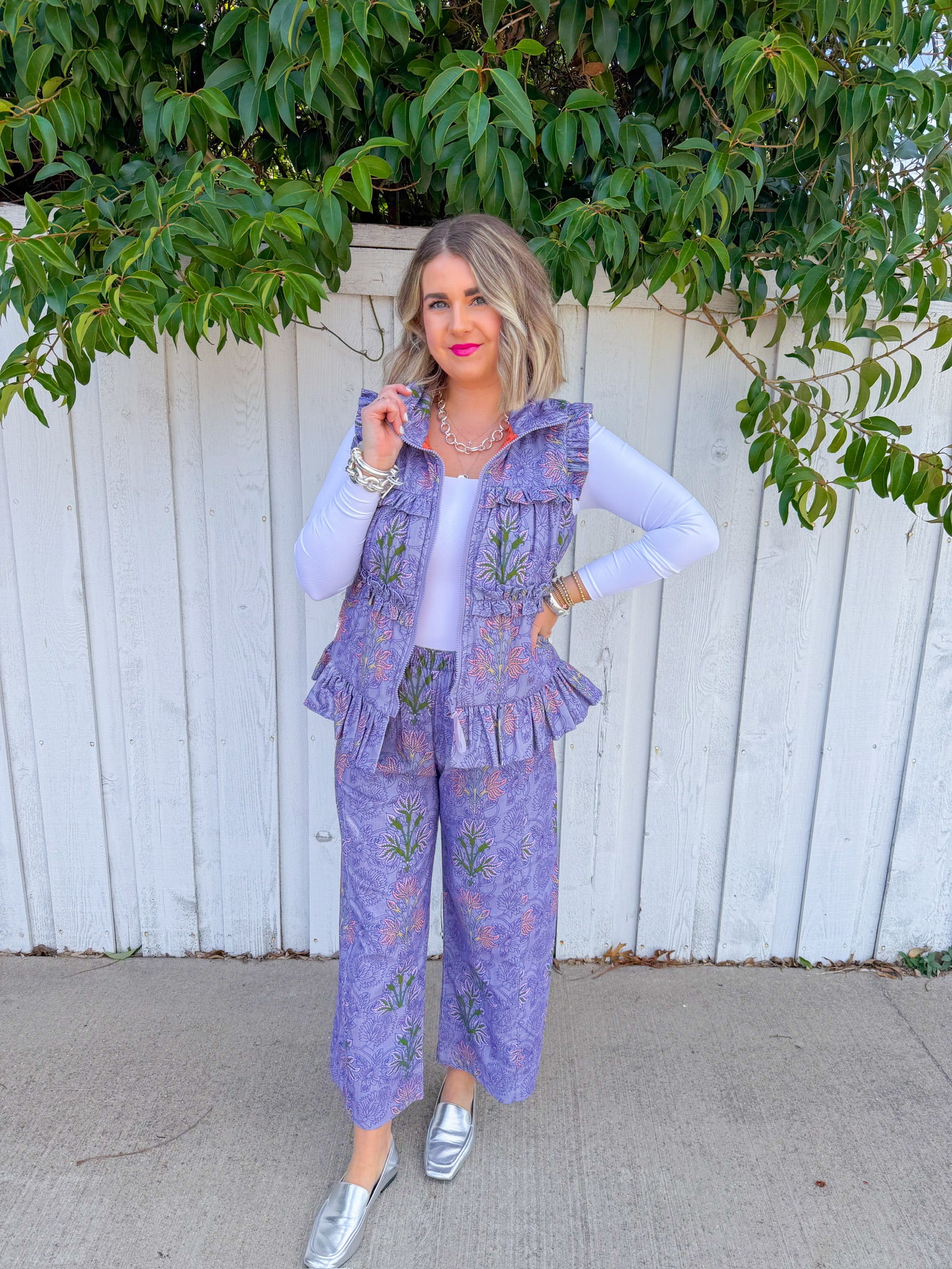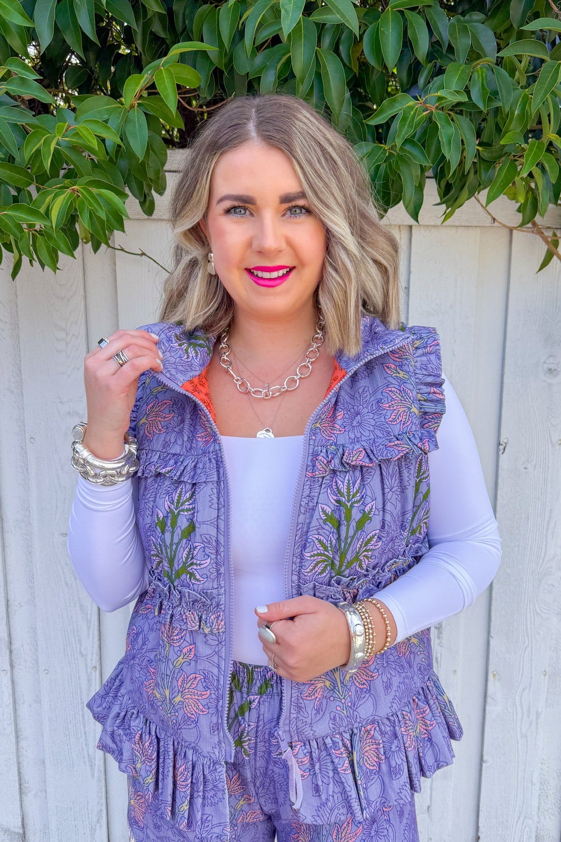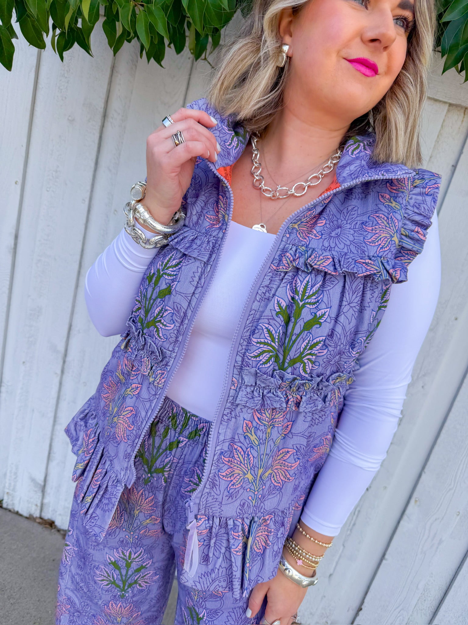 Featuring a delicate floral print that brings nature's beauty to life, this piece is finished with sweet ruffle trim detailing for an extra touch of whimsy.