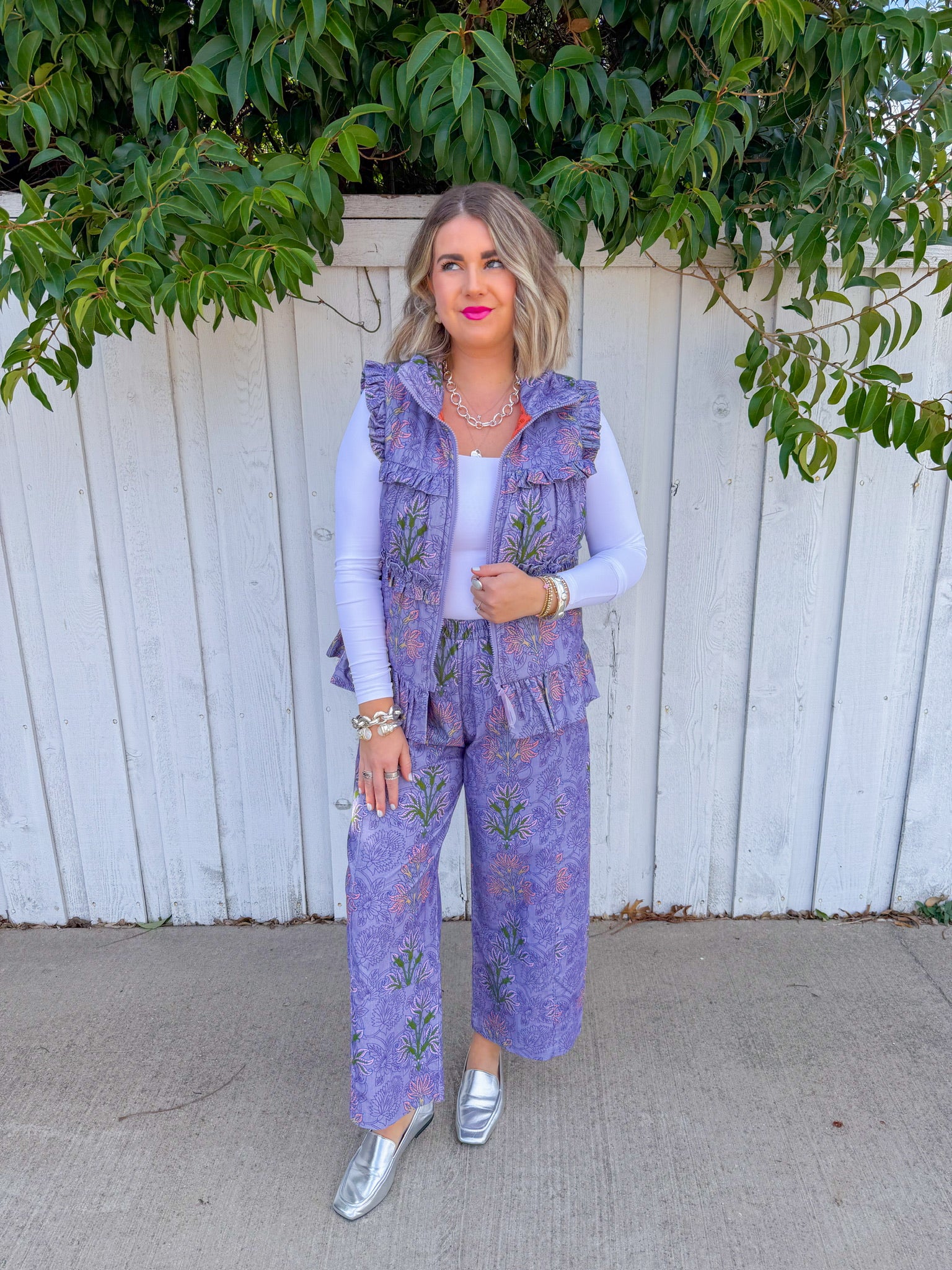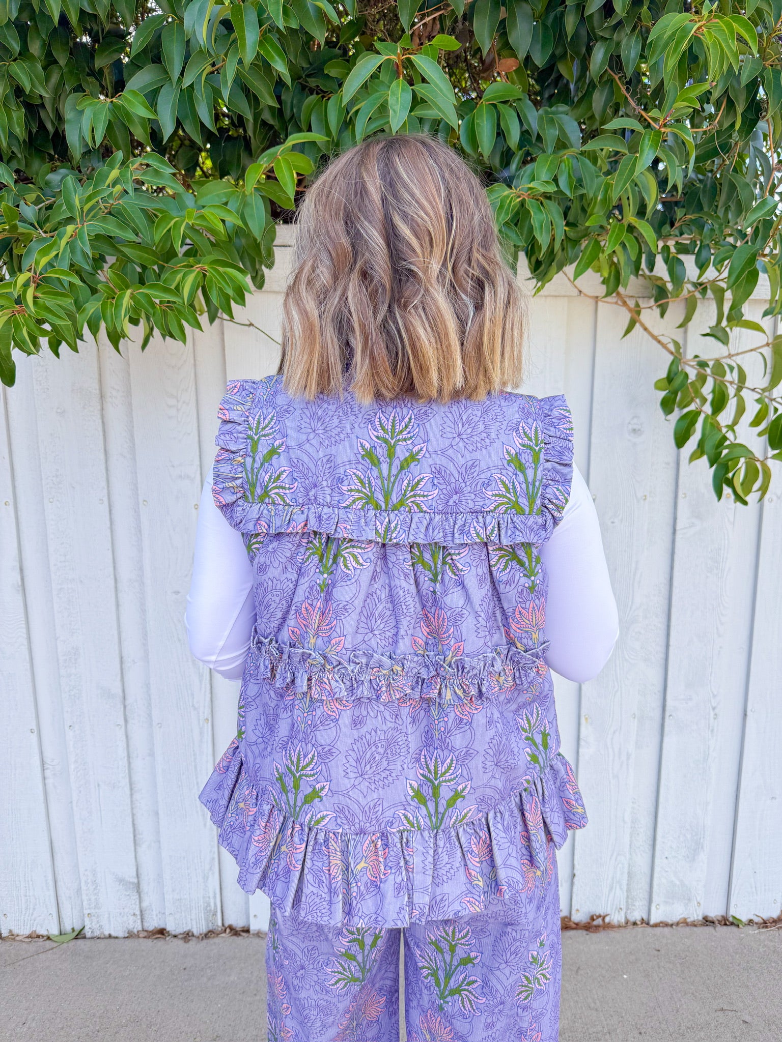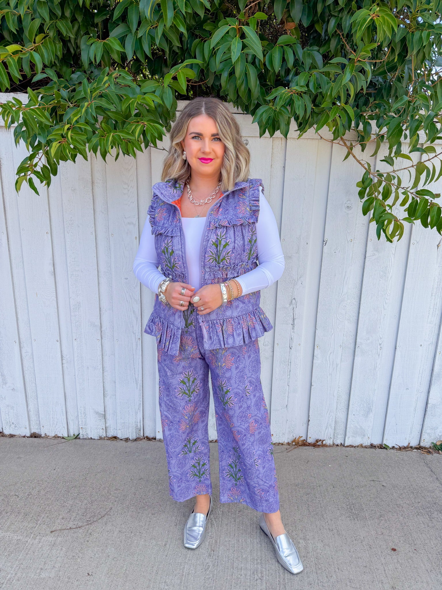 Featuring a delicate floral print that brings nature's beauty to life, this piece is finished with sweet ruffle trim detailing for an extra touch of whimsy.