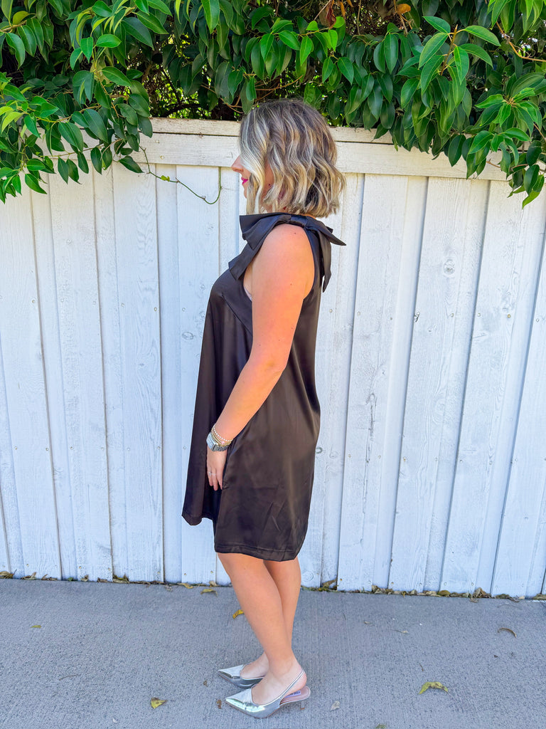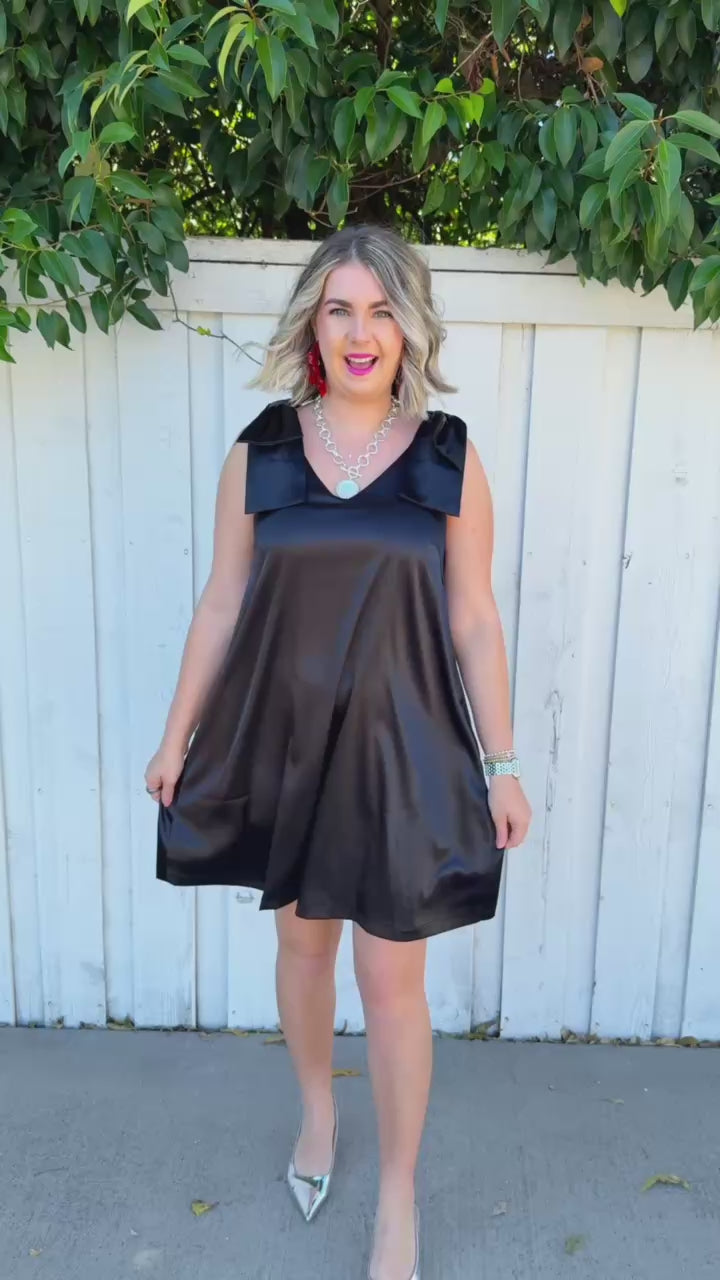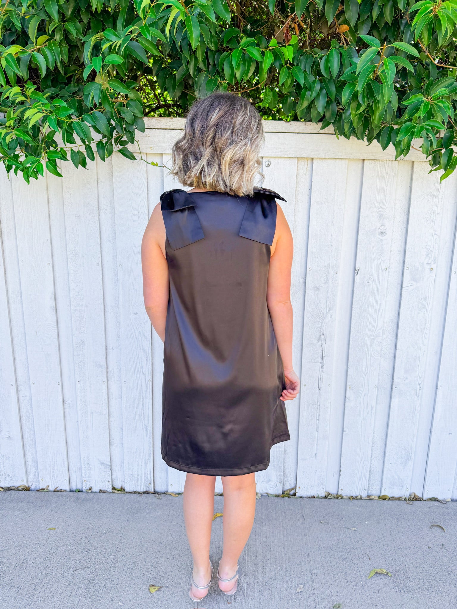 The charming bow shoulders add a flirty twist that keeps things fun and fresh, while the smooth fabric feels as good as it looks.