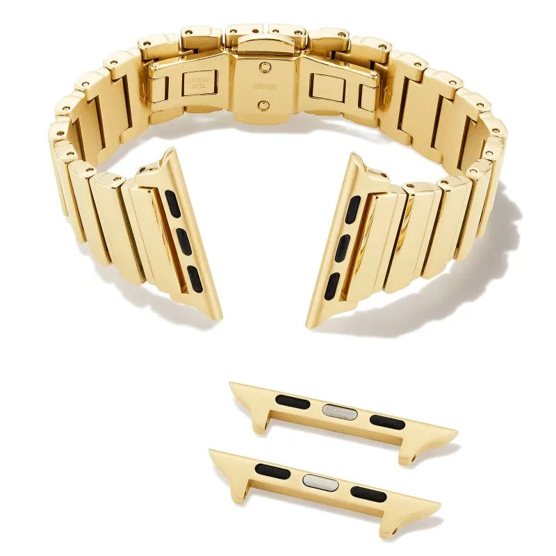 Level up your Apple Watch® or Samsung Galaxy Watch® with the Leanor Narrow Watch Band in Gold Tone Stainless Steel. A slimmer take on one of our favorite watch bands, this streamlined style is perfect for those with a more minimal aesthetic. To switch up your band, simply press down on the easy release mechanism and then align each new band to the pin holes on either side of the watch.