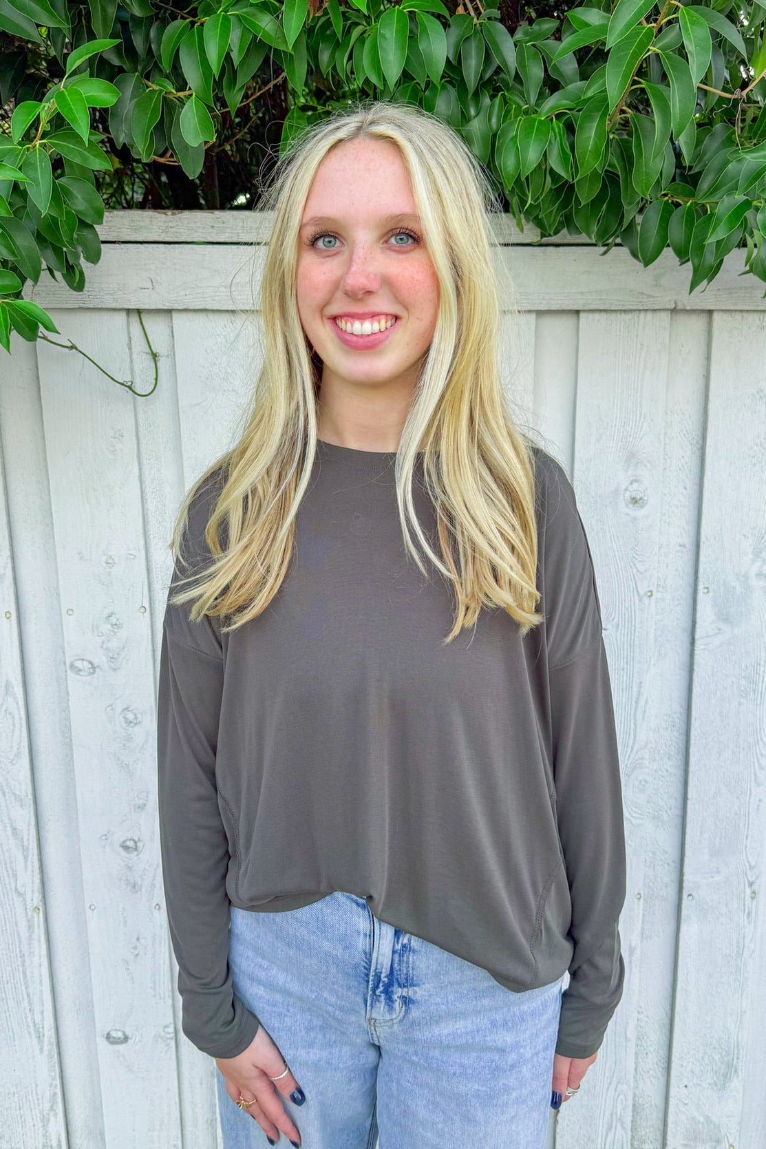 Whether you're off for a quick coffee run, conquering a busy errand day, or sneaking in a power walk, the Leila Top adds a playful touch to any casual look! You'll love how effortlessly it fits into your everyday wardrobe!