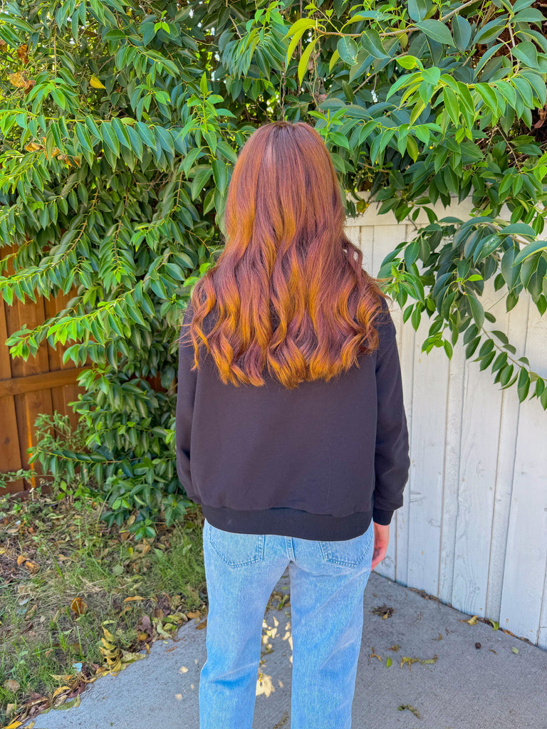 Go a little spooky-chic with this black crewneck, stamped with a big sparkly “WICKED” in neon pink and lime that pops for concerts, game days, or October plans. Soft on the inside with a relaxed fit and ribbed trims—throw it on with biker shorts and sneakers now, or layer over a plaid skirt and boots when the air turns crisp.
