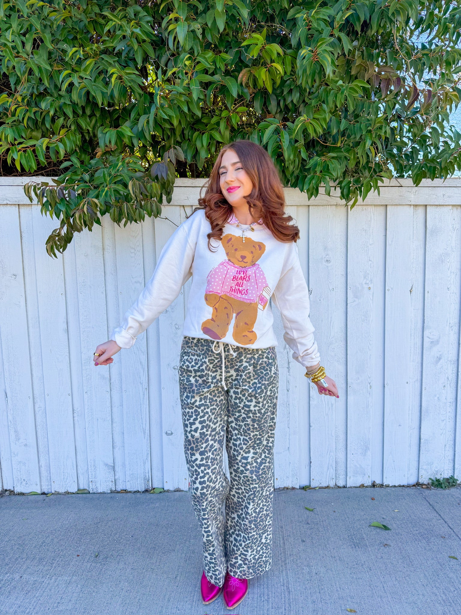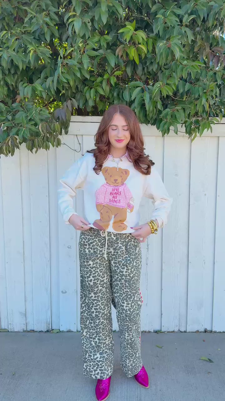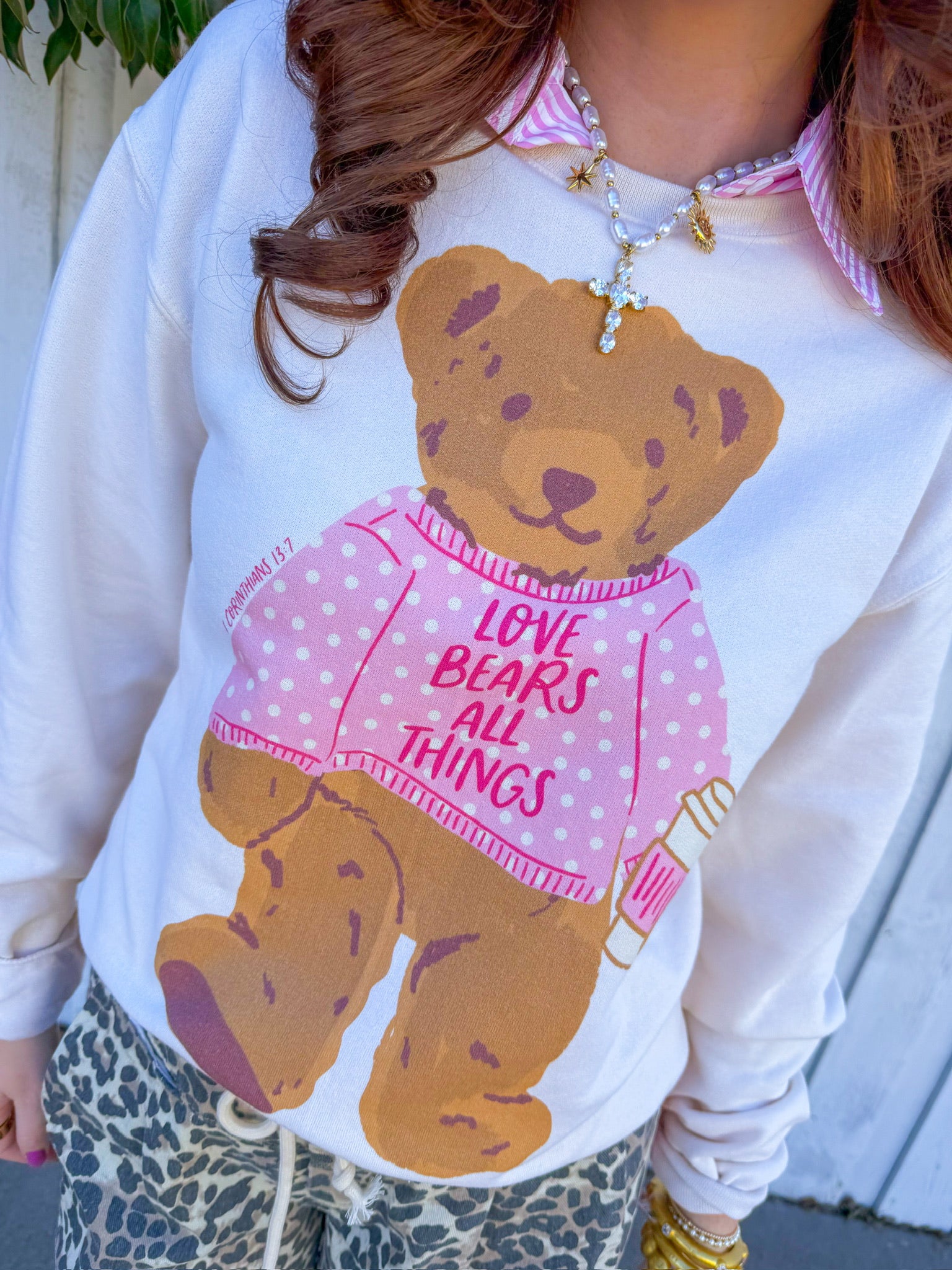 Love Bears All Sweatshirt - Ivory Cozy up in this charming ivory sweatshirt featuring an adorable bear print and heartfelt saying on the front.