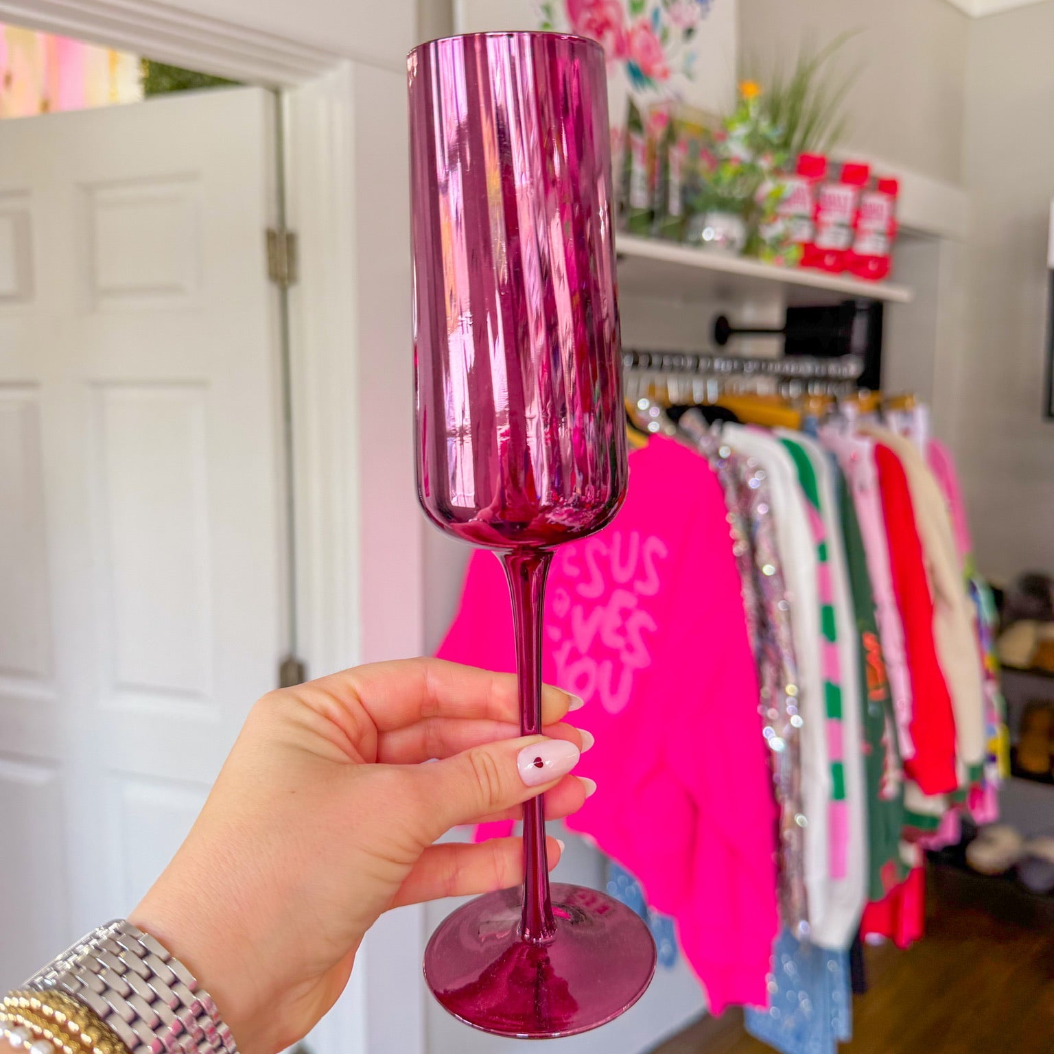 The eye-catching reflective finish catches the light beautifully, making every celebration feel extra special. Whether you're hosting a dinner party, bridal shower, or girls' night in, this playful glassware adds a fun pop of color to your table. Cheers to making memories in Southern style.