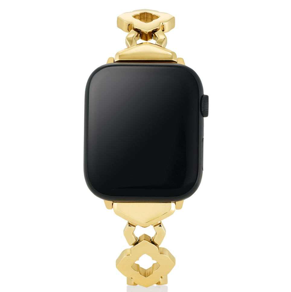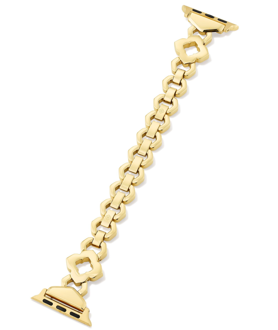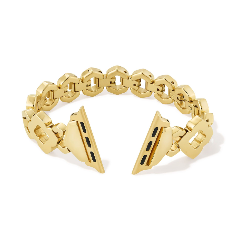Give your wrist stack a signature Kendra Scott touch with the Medallion Watch Band in Gold Tone Stainless Steel. Designed to fit your Apple Watch® and Samsung Galaxy Watch®, this band features links shaped in our instantly recognizable medallion logo. To switch up your bands, simply press down on the easy release mechanism and then align each new band to the pinholes on either side of the watch.
