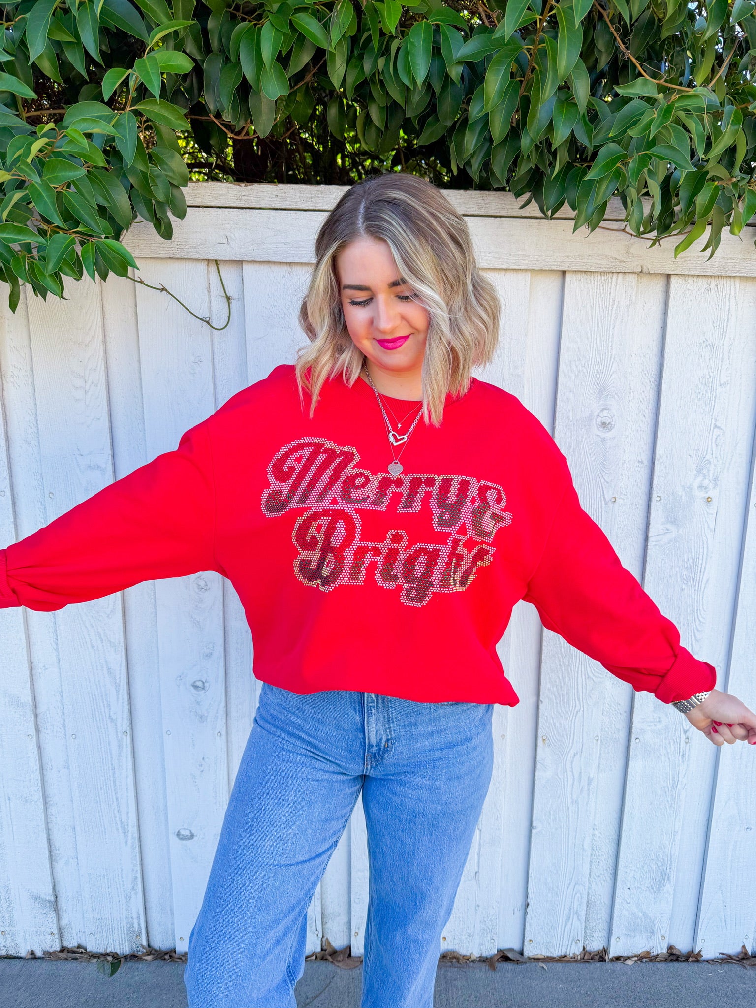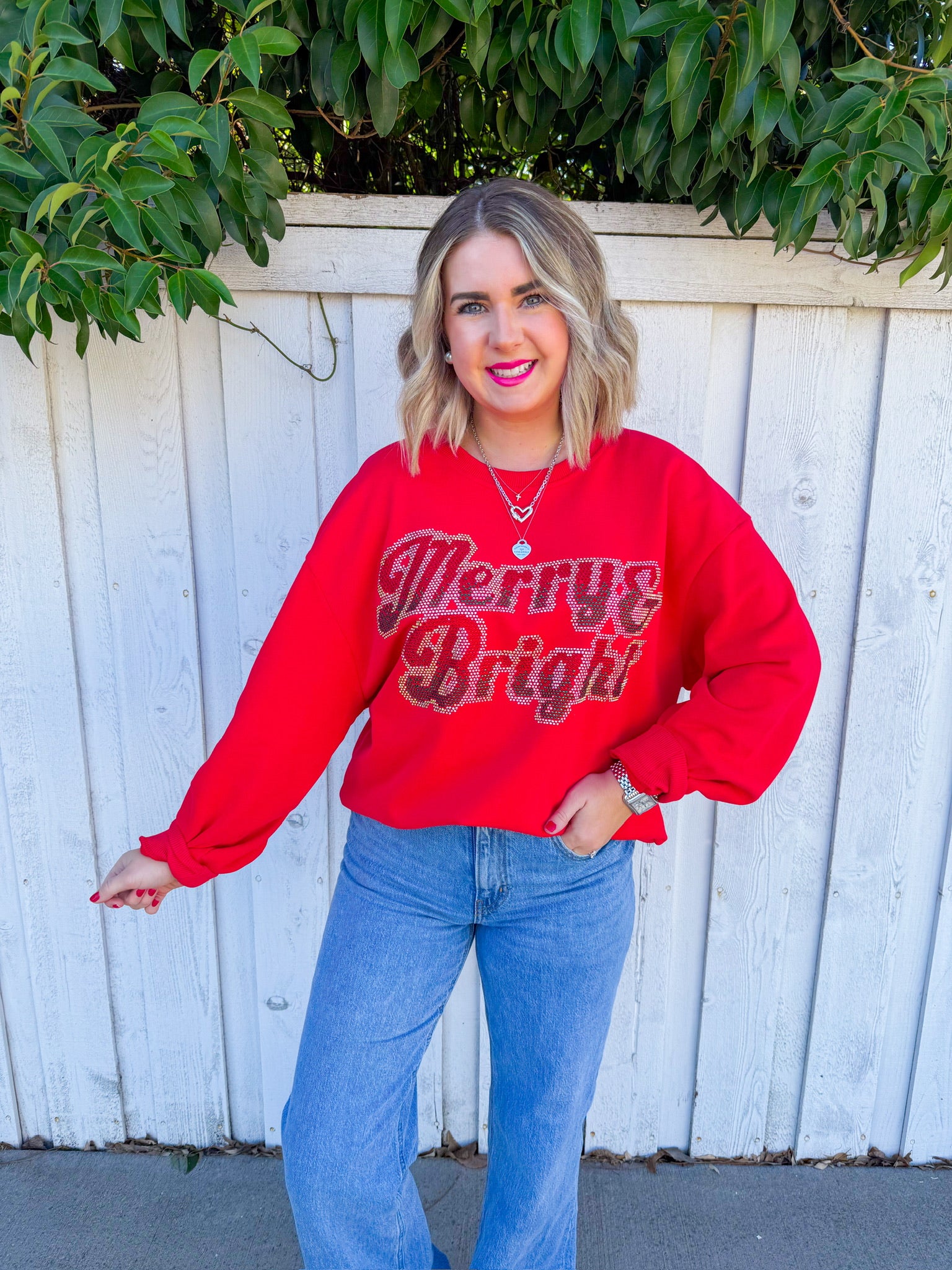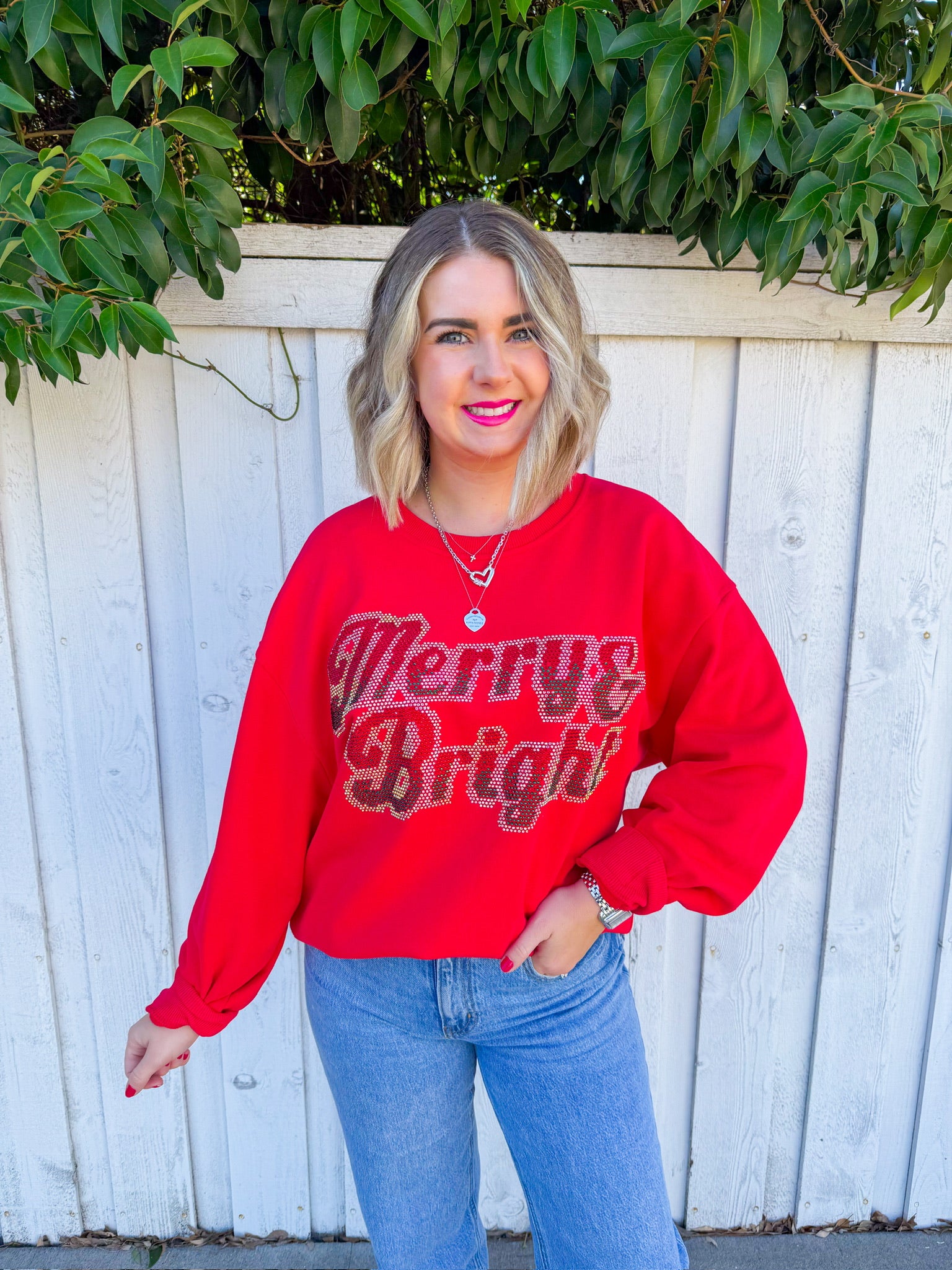 Get cozy and shine bright with the Merry & Bright Sweatshirt in vibrant red.