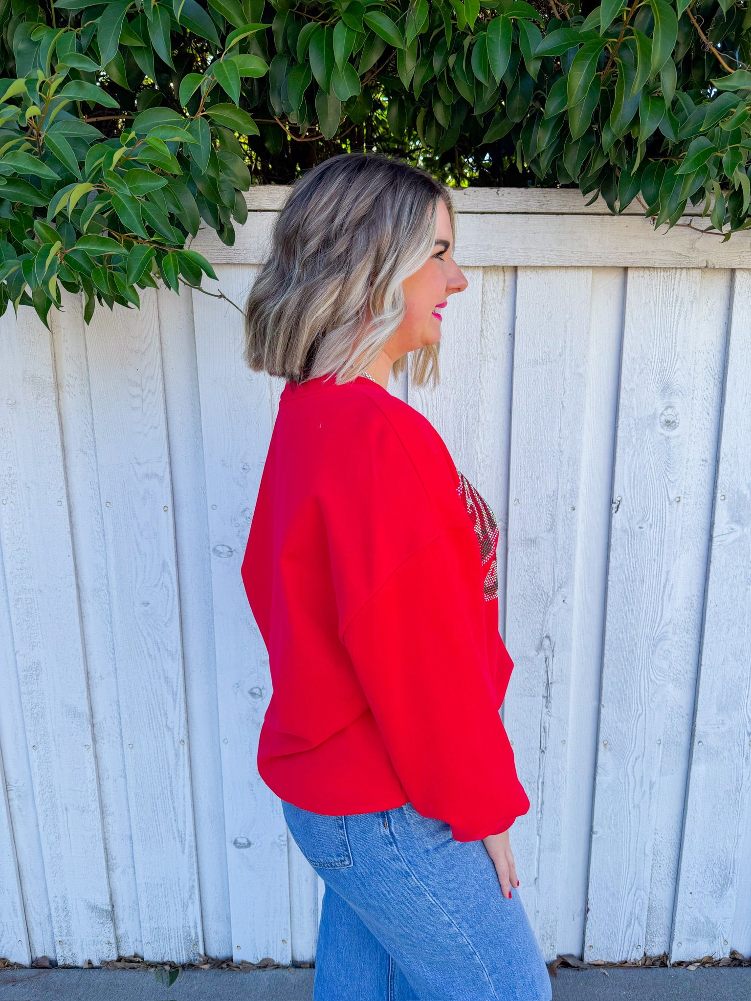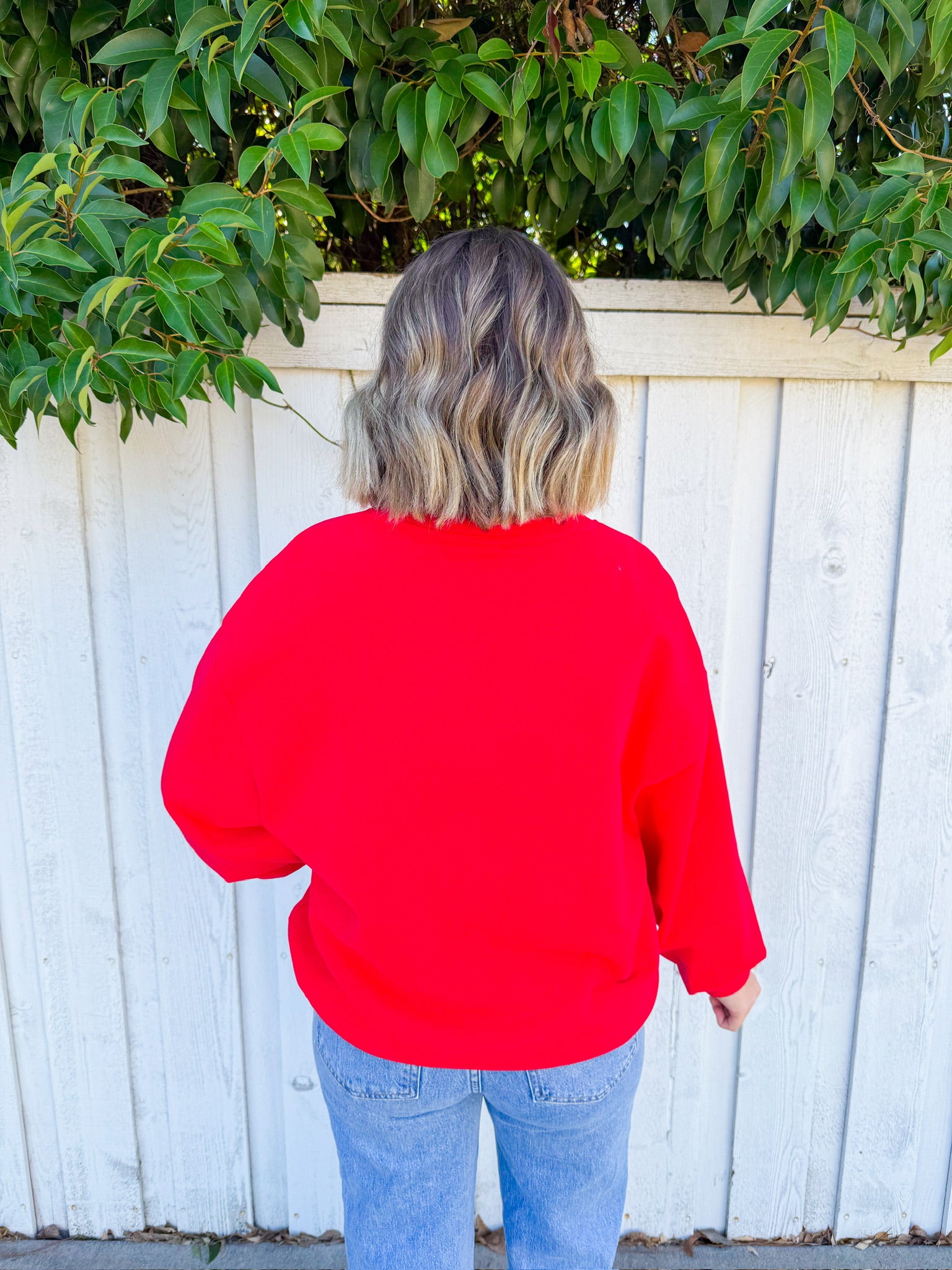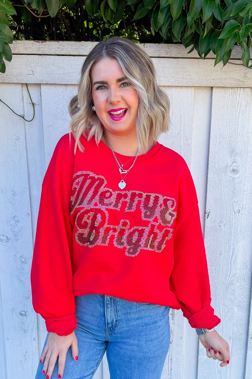 Get cozy and shine bright with the Merry & Bright Sweatshirt in vibrant red.