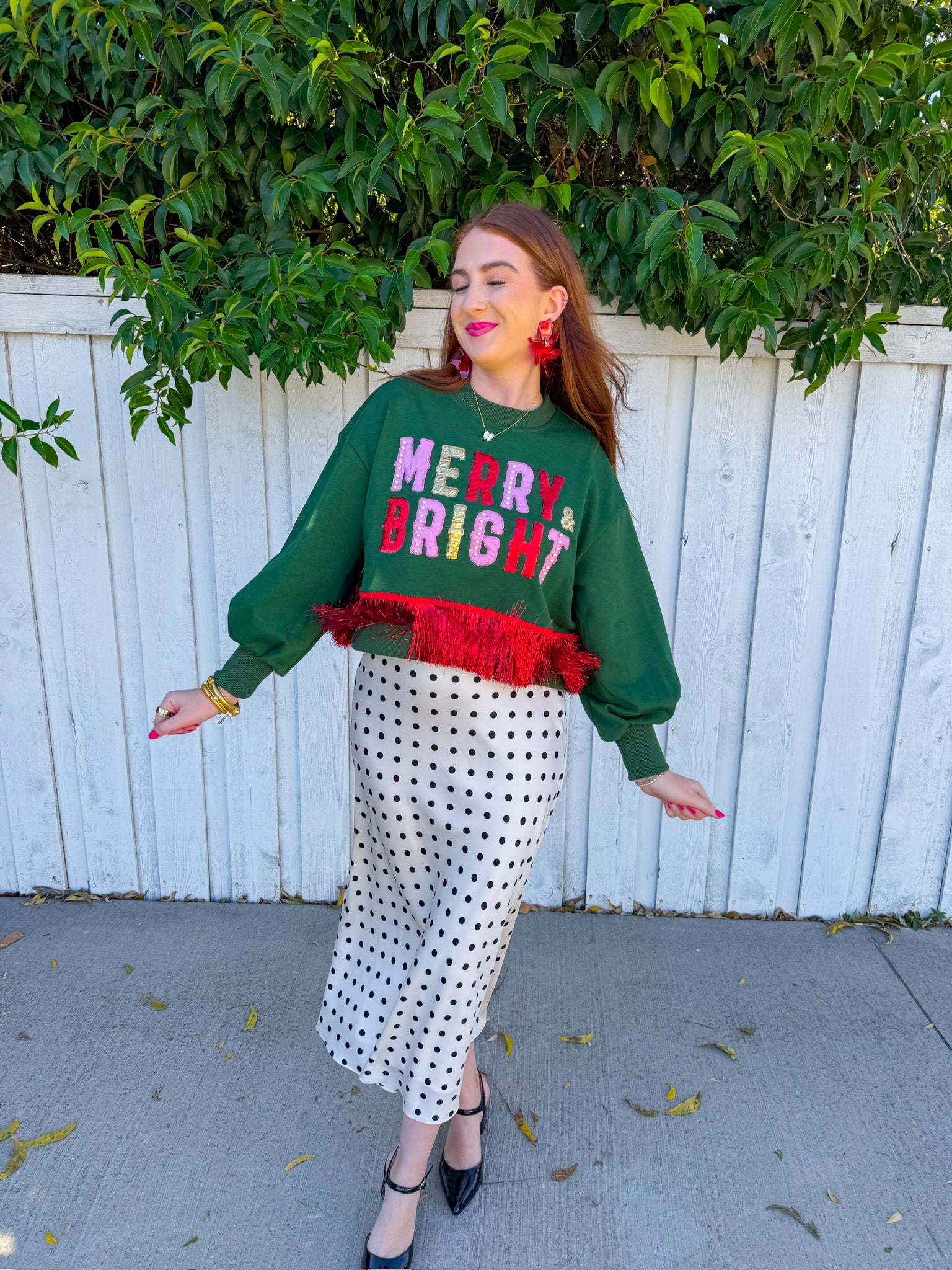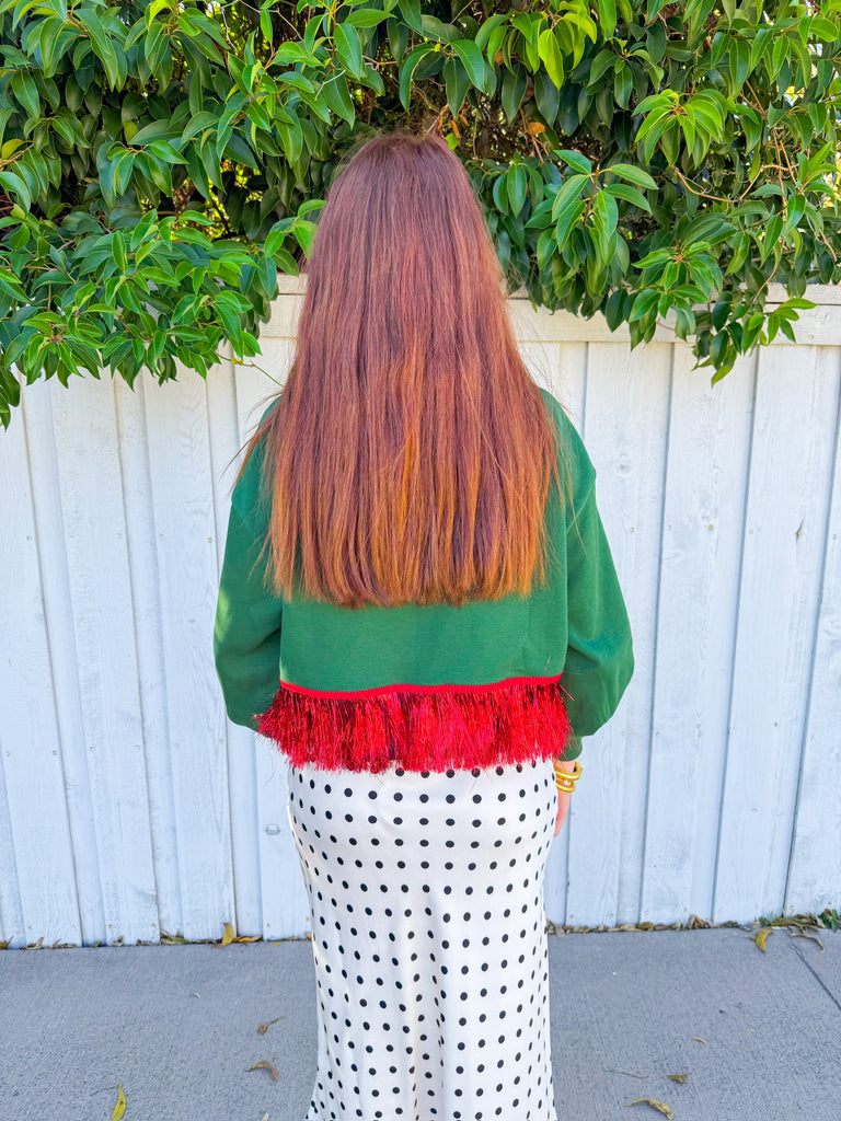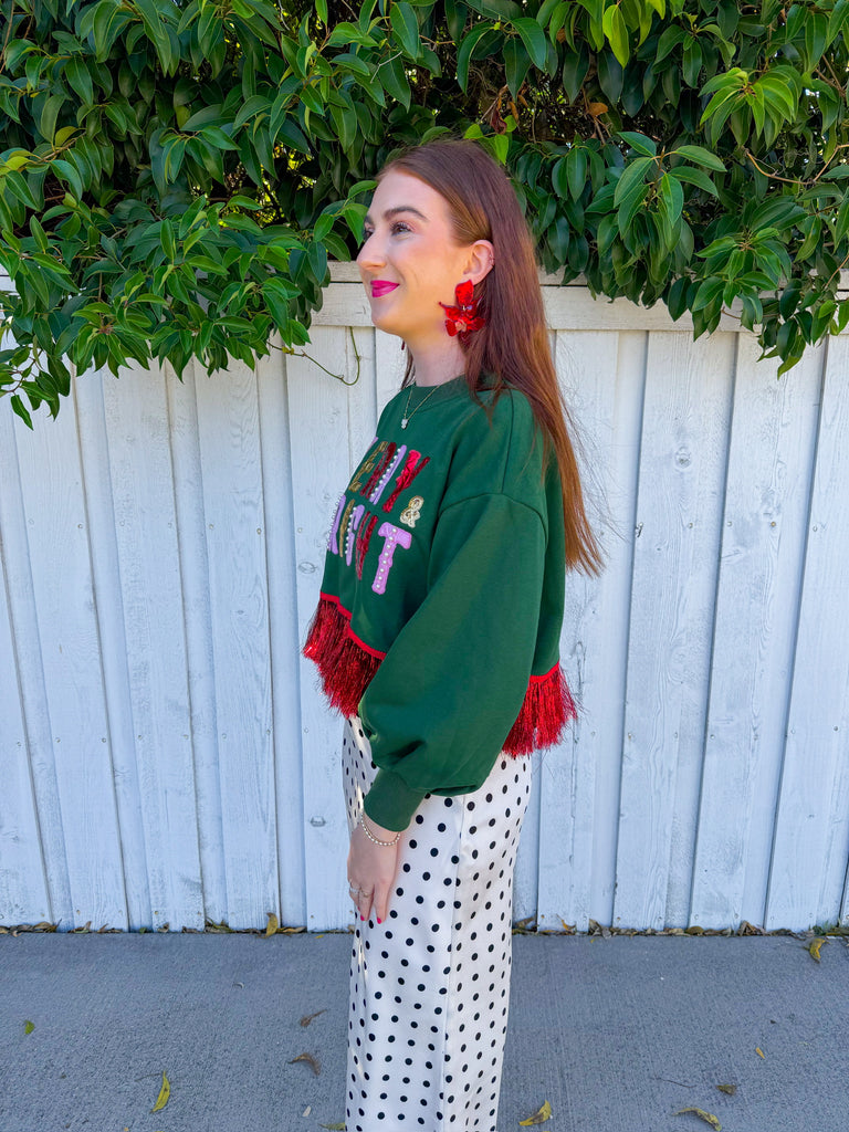 Merry & Bright Tinsel Fringe Sweatshirt - Green