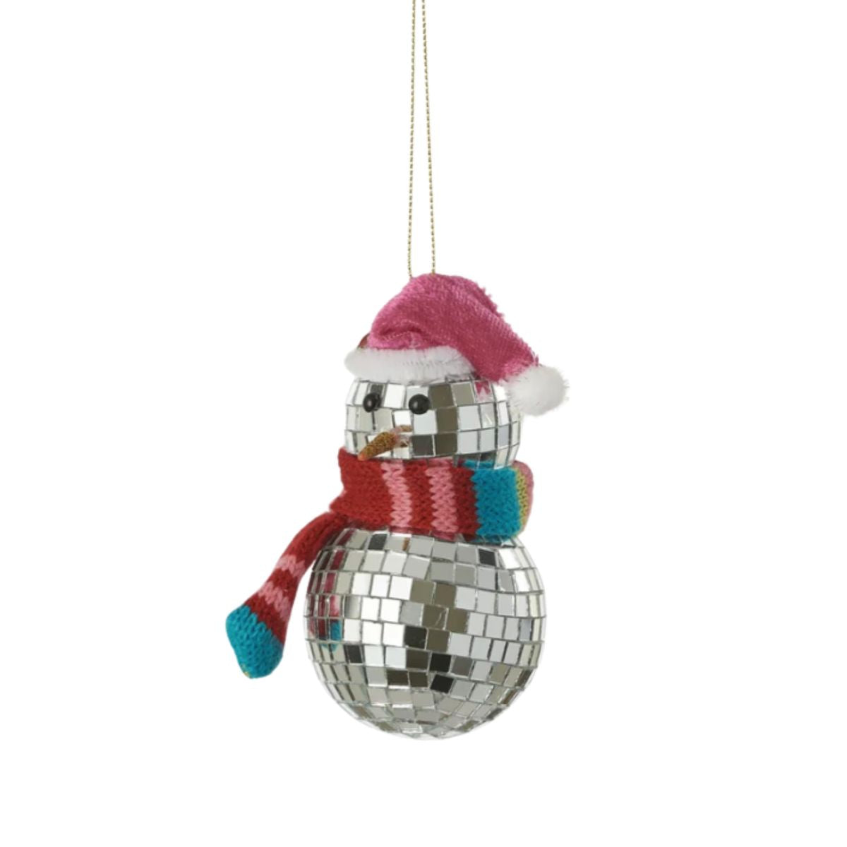Mirror Ball Snowman Ornament - Pink Hat