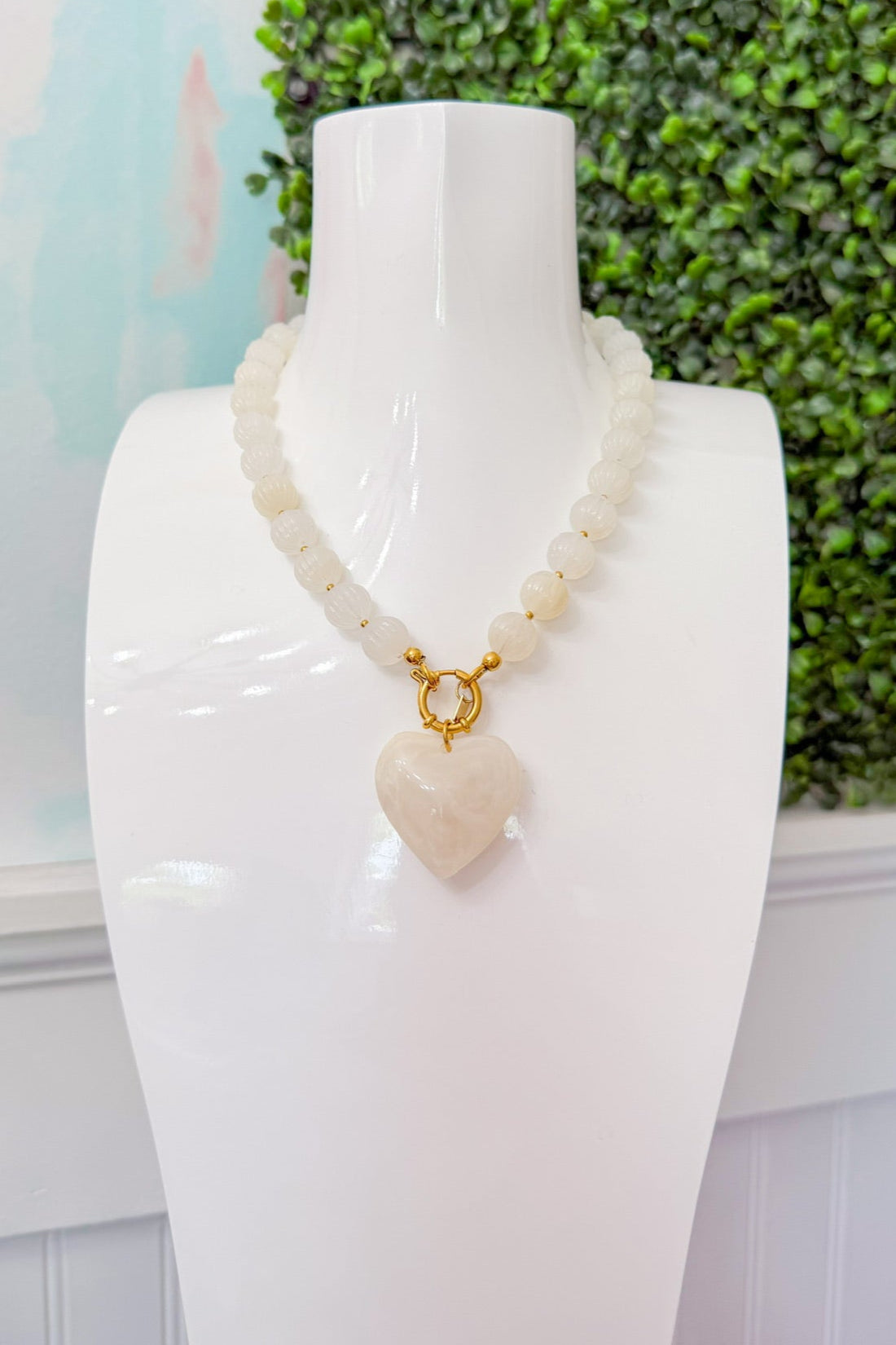 Featuring delicate beads in soft moonlight hues and a sweet heart charm, this necklace brings playful elegance to any outfit. Perfect for those who love a bit of sparkle with a heartfelt twist.