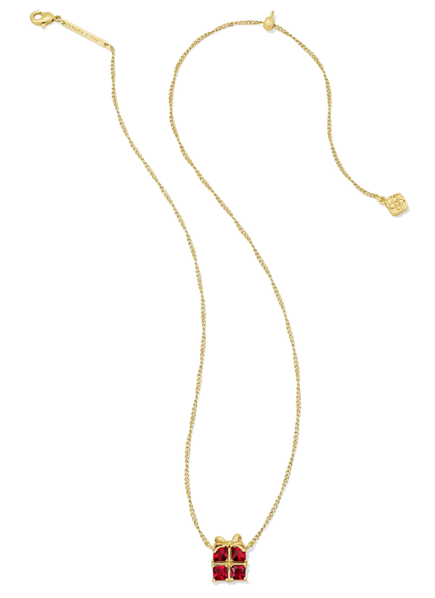 Your holiday look? It’s a wrap! Featuring sparkling red crystal and high-shine metal details—including the cutest metal bow—our Present Gold Short Pendant Necklace is ready to be styled, stacked, and gifted all season long.