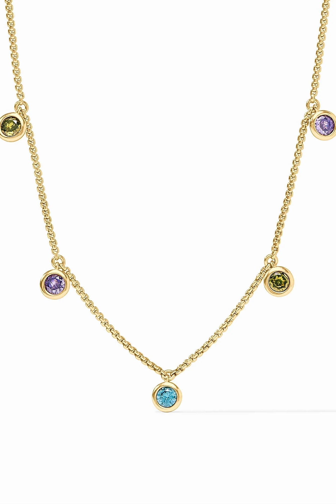 Rainbow Delicate Charm Necklace - Blue Twilight/Gold