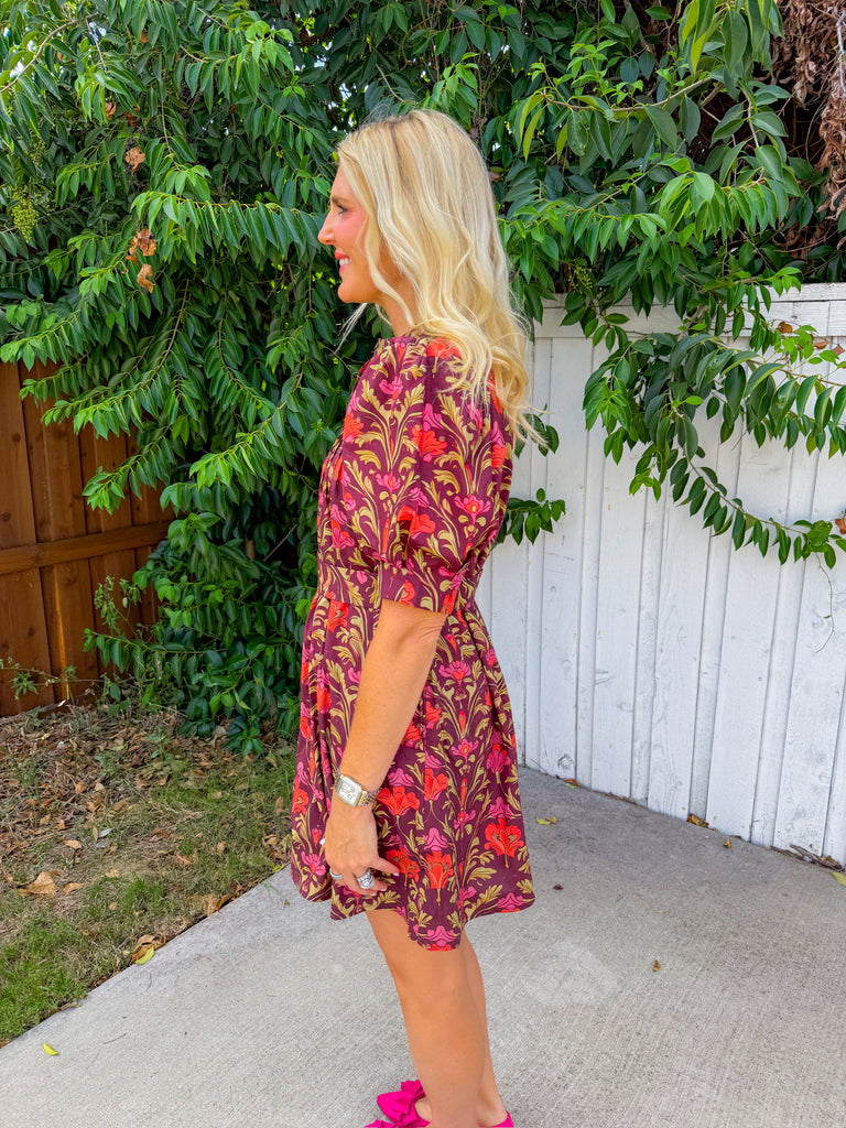 Step into spring vibes with the Real Radiance Mini Dress in Burgundy. Its mini length keeps things flirty and fresh, perfect for sunny days or evening outings.
