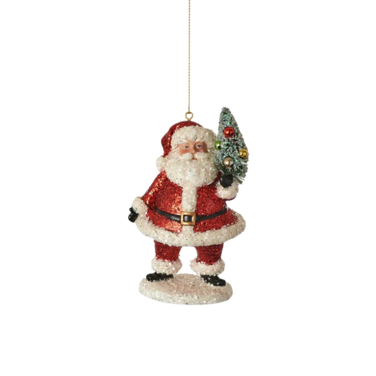 Spread holiday cheer with this dazzling Red Glitter Santa w/Tree Ornament! Featuring shimmering red glitter details and a charming Santa design complete with a festive tree, this ornament brings sparkle and personality to your Christmas display.