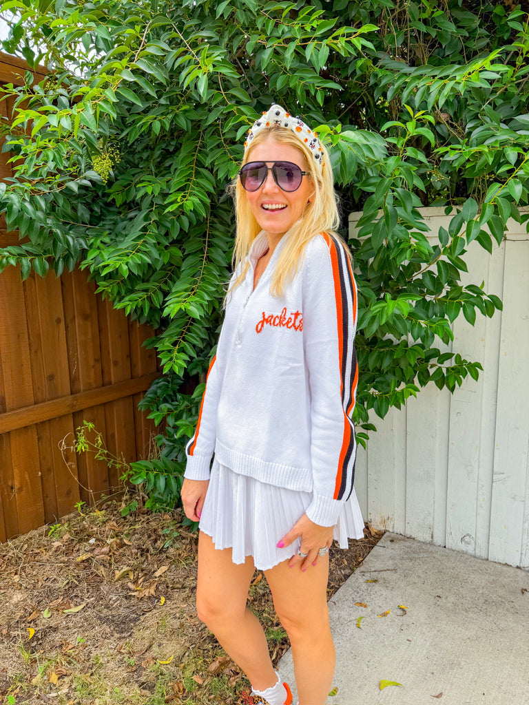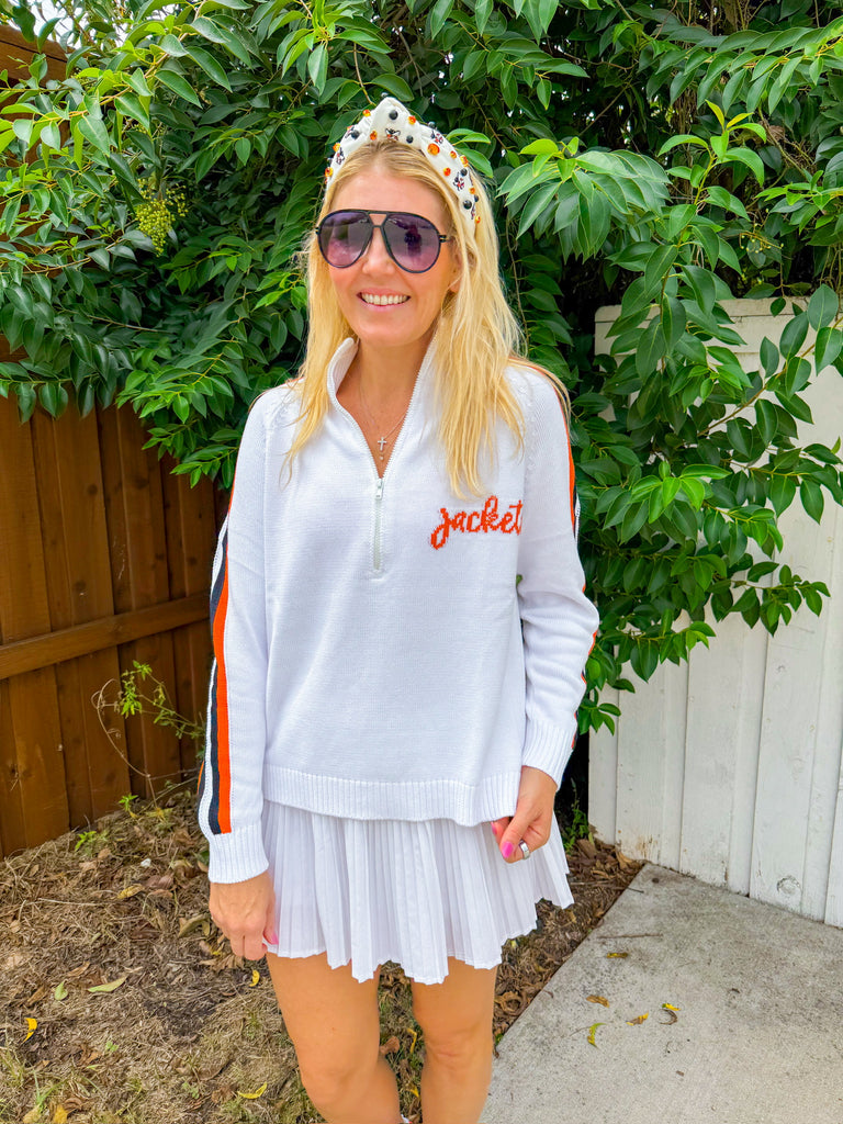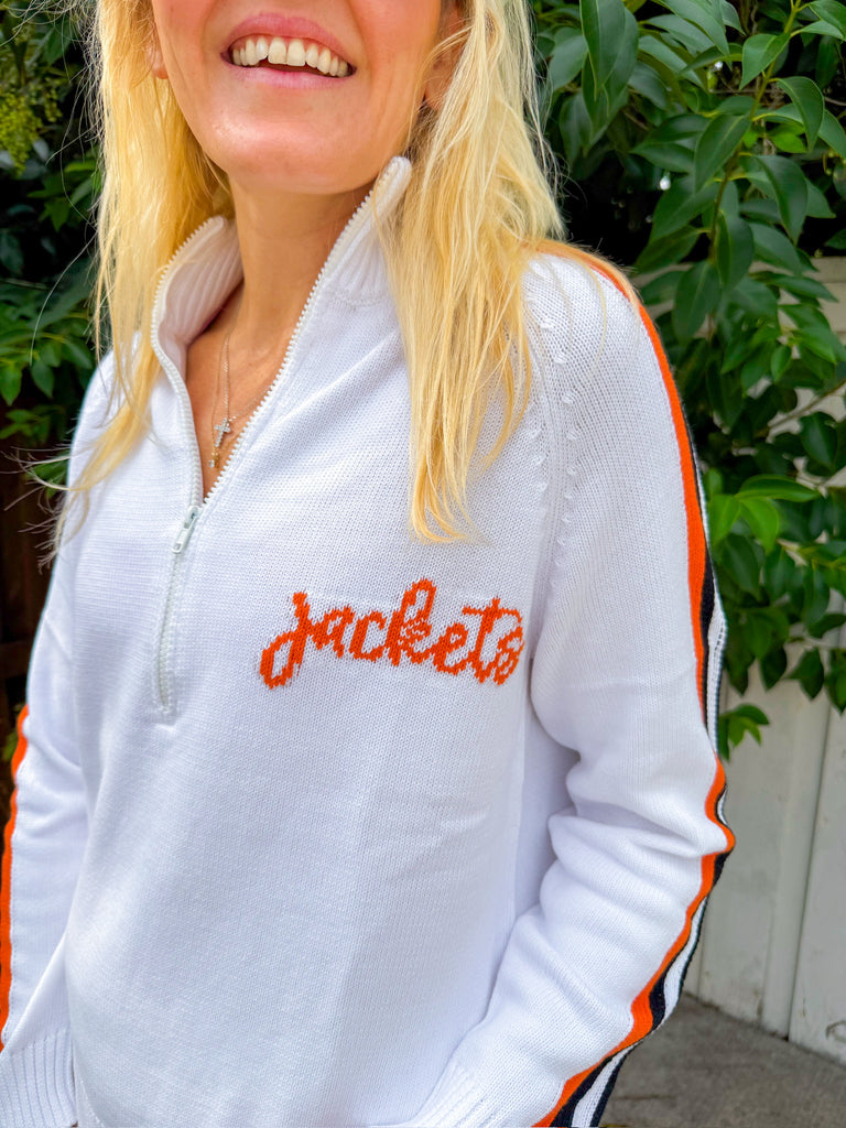 Conquer your casual wardrobe with this eye-catching Rockwall Quarter Zip Pullover. Featuring a bold custom rockwall graphic that'll make you the talk of the climb, this cozy white sweater blends adventure vibes with everyday comfort.