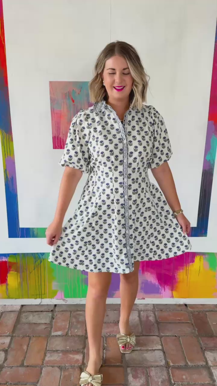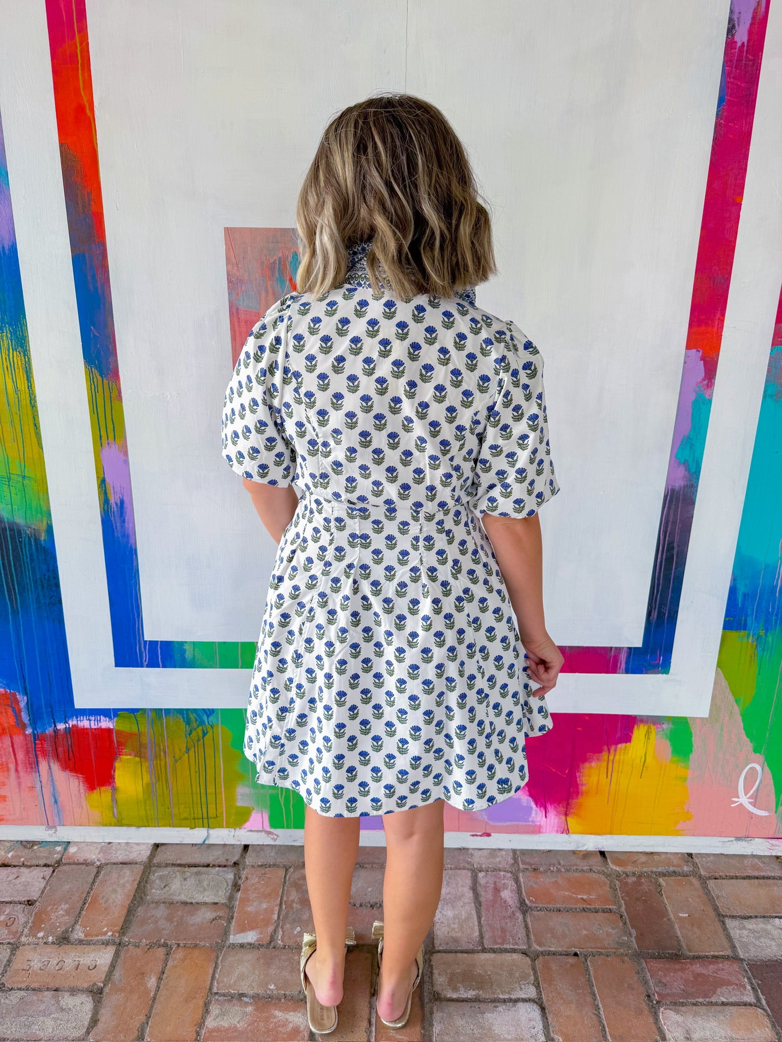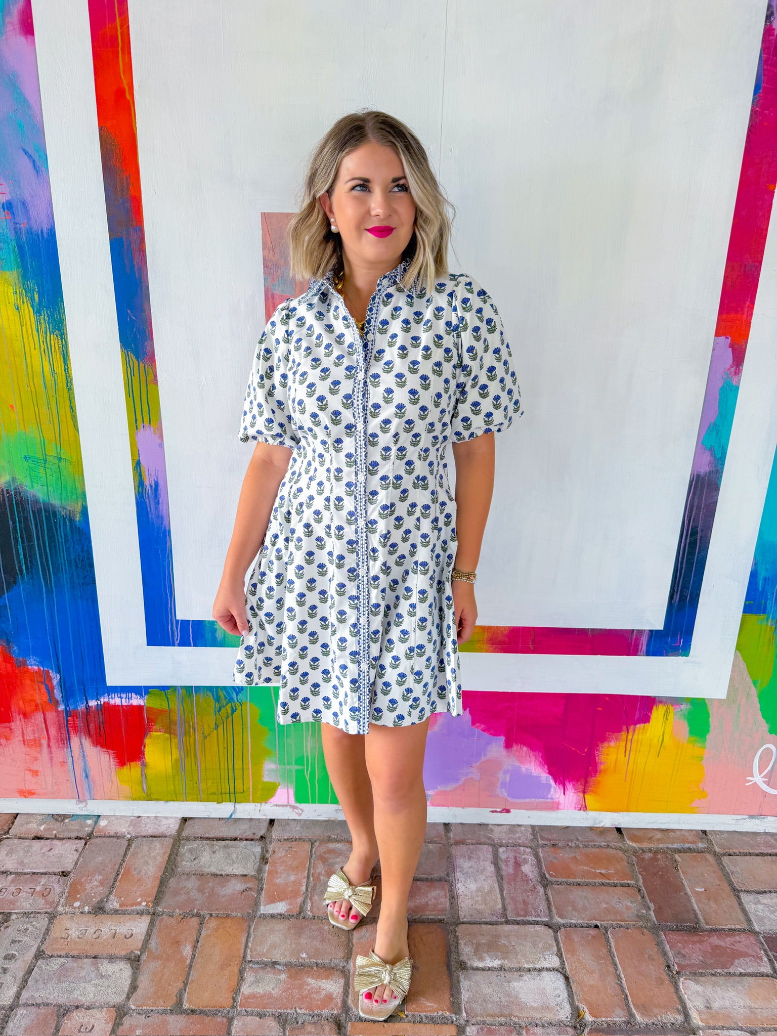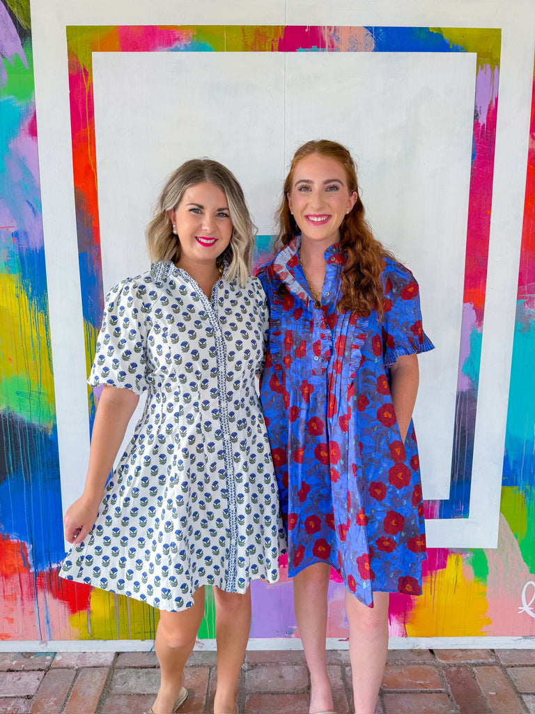Perfect for Saturdays at the farmers market or casual brunches with the girls, the Rory Mini Dress brings effortless charm with its navy floral block print and sweet silhouette.