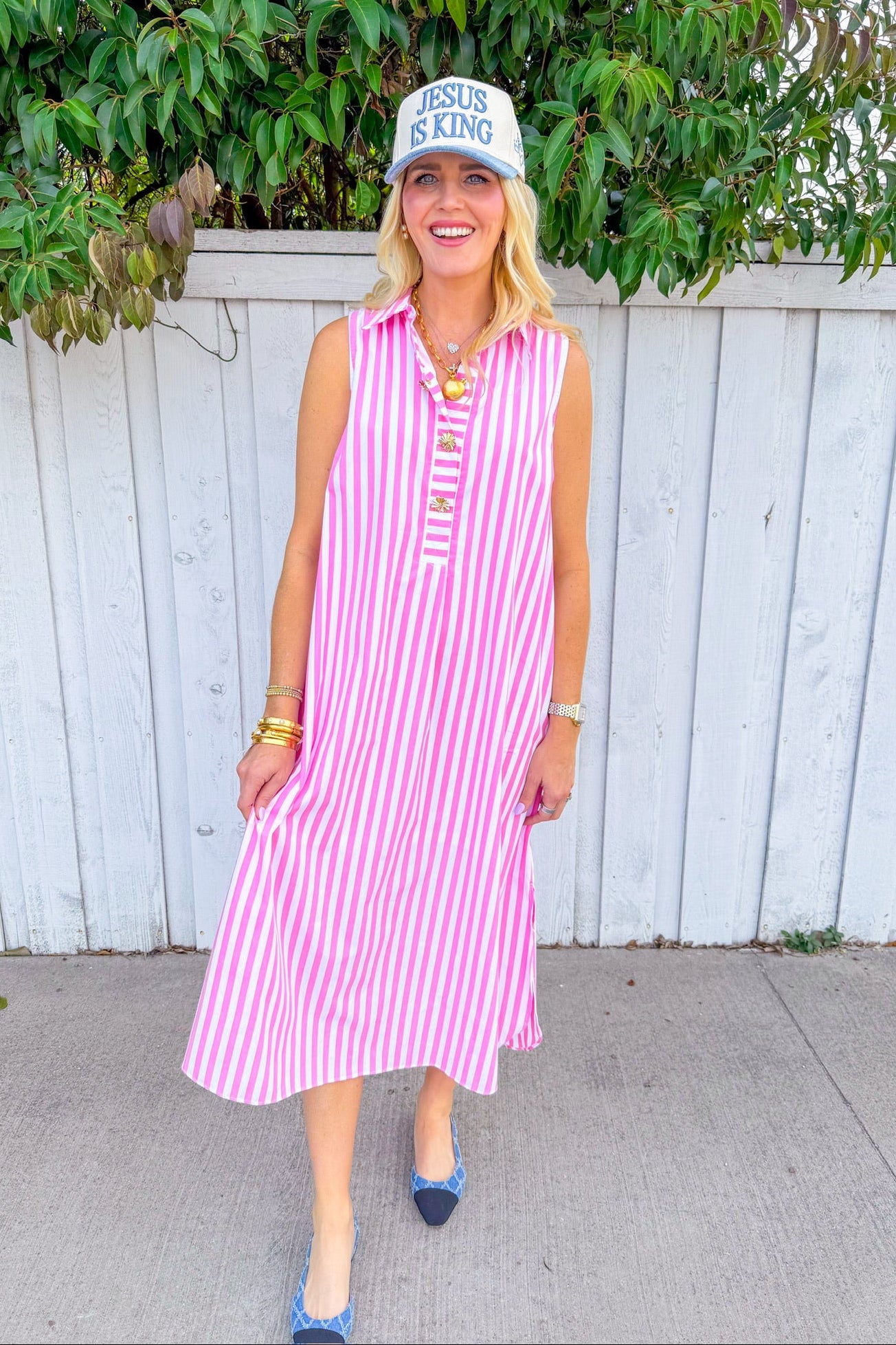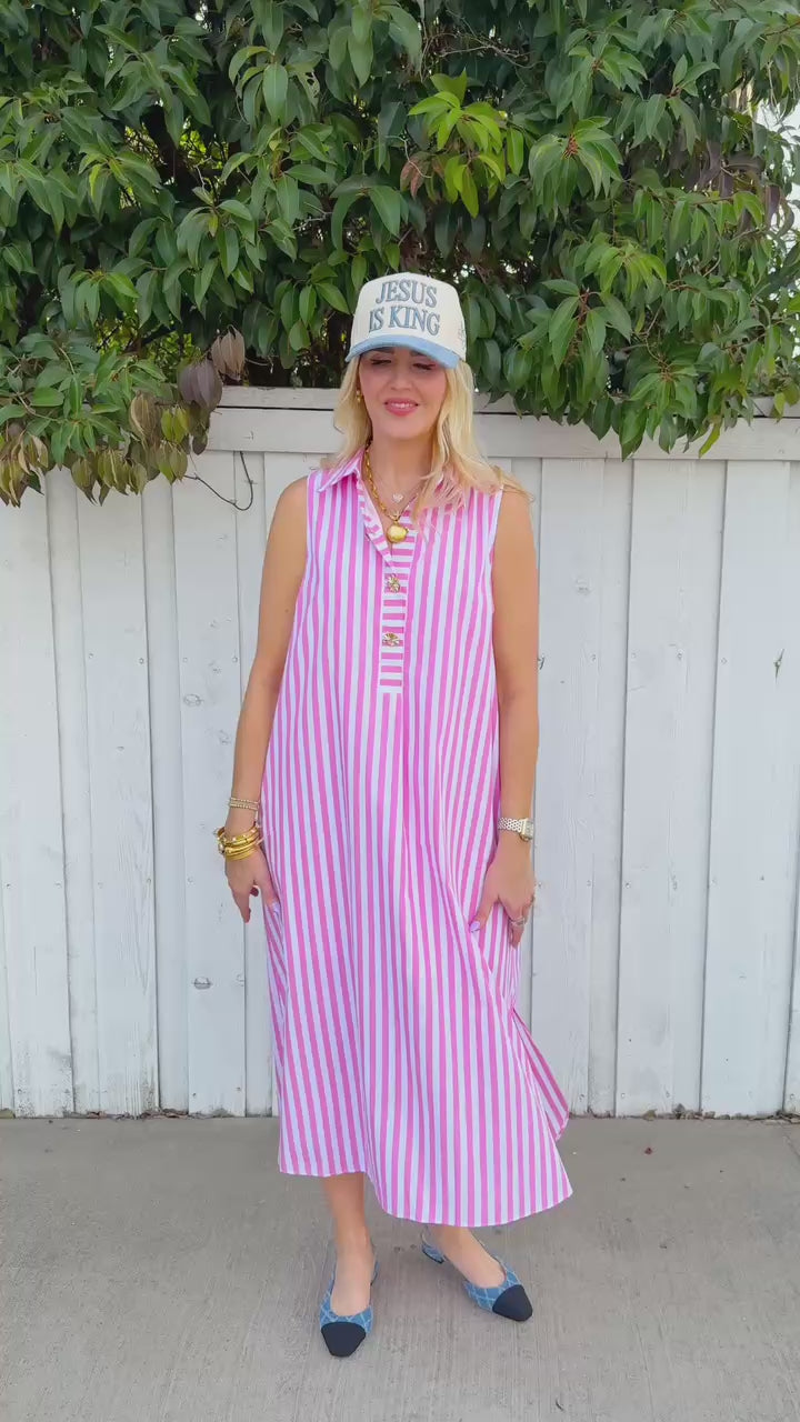 Escape to coastal charm with this breezy Rosemary Beach Midi Dress. Soft pink and white stripes create an effortless, timeless look perfect for warm-weather adventures.
