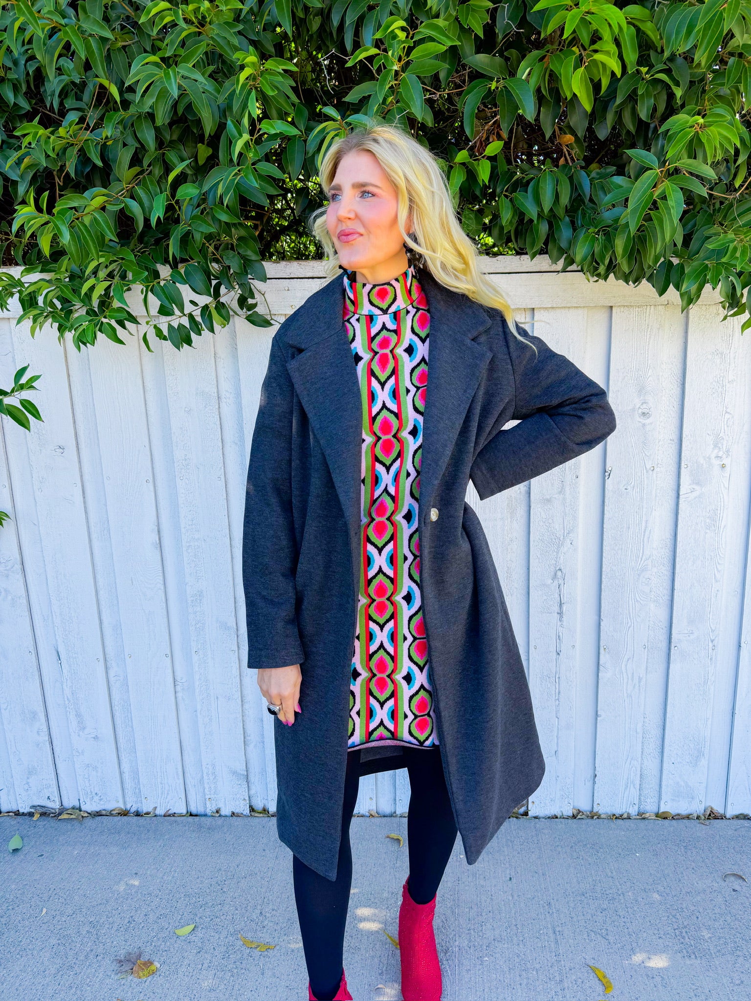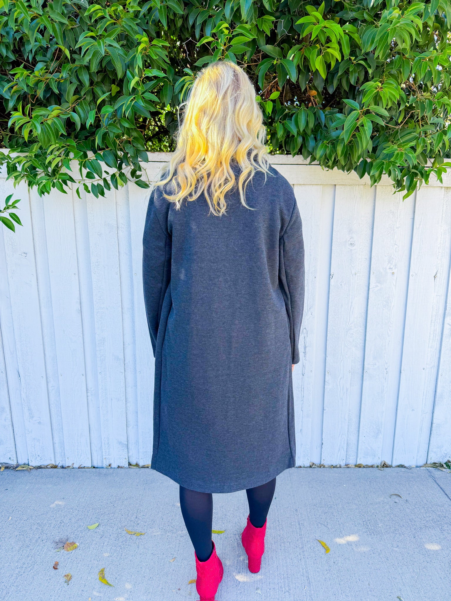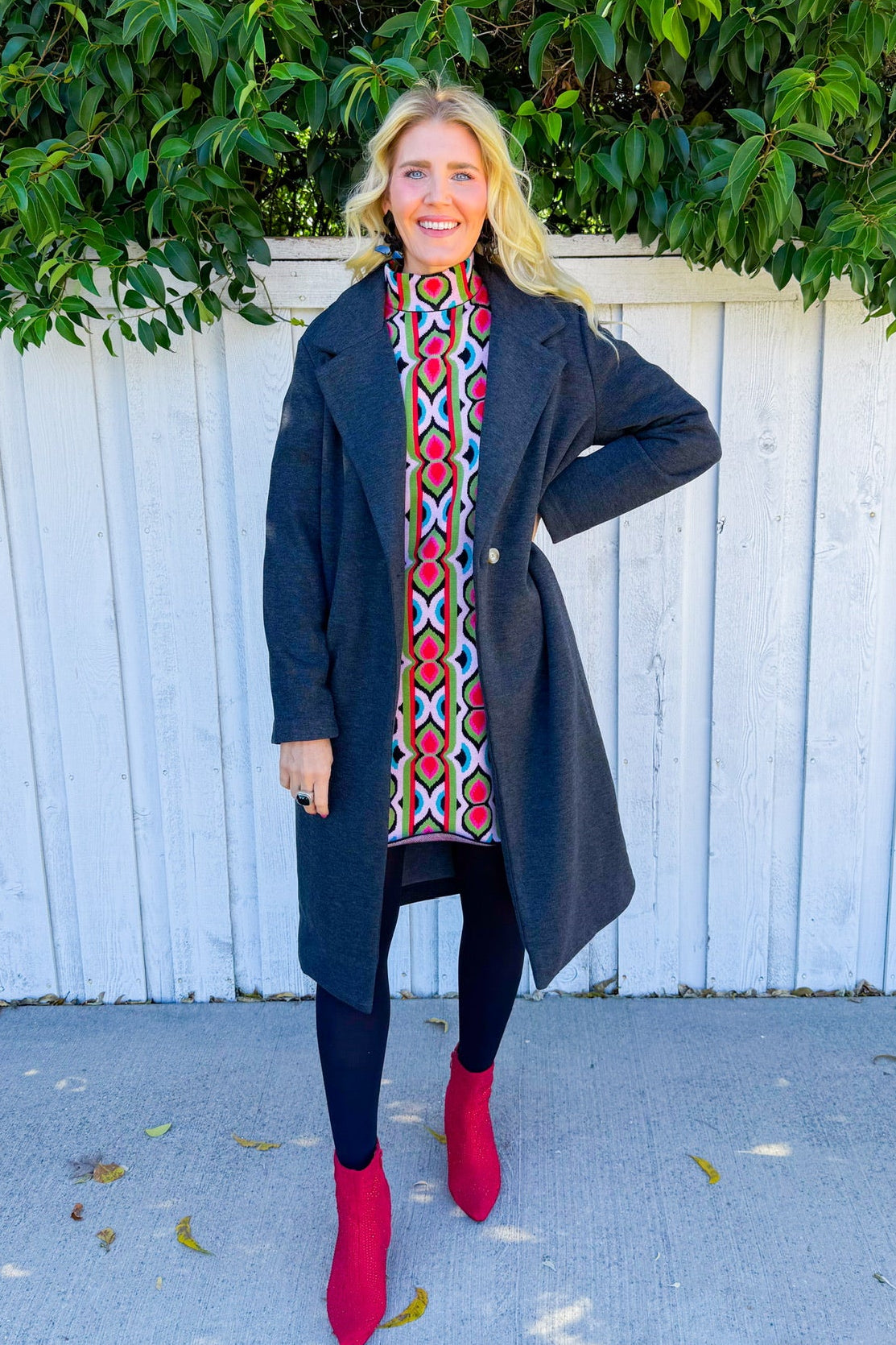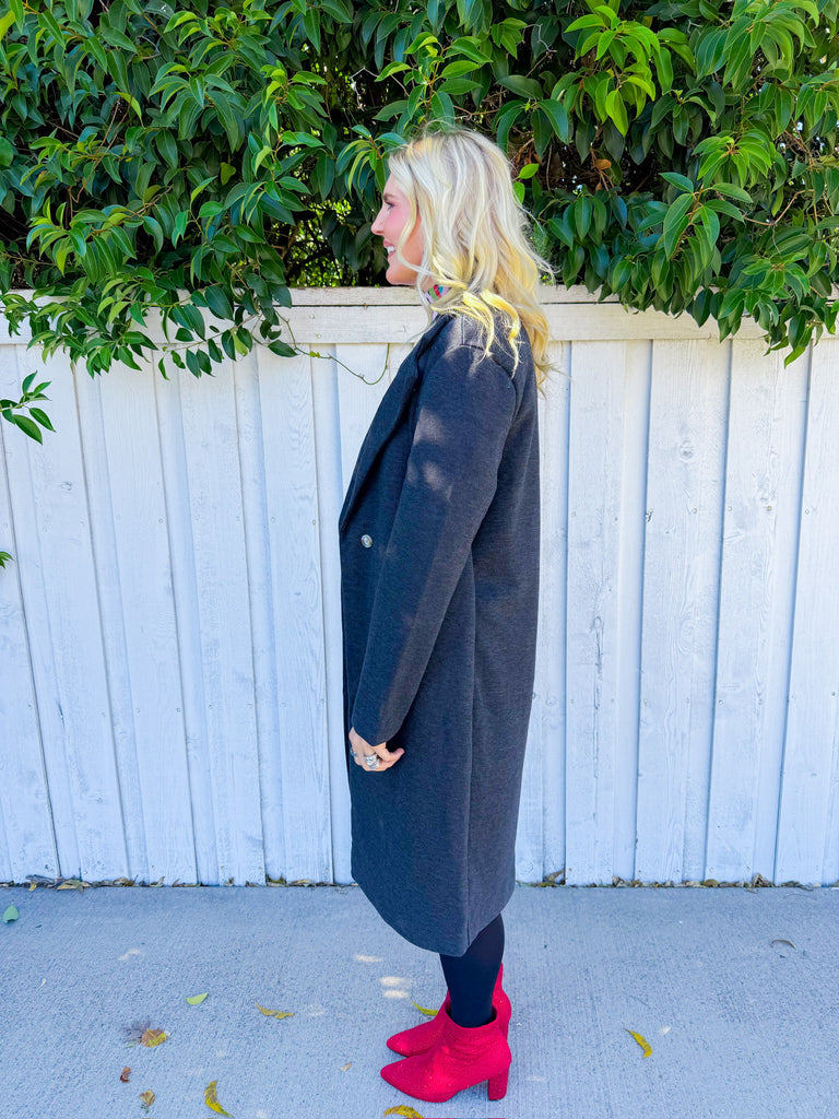 This long coat is built for cold-weather adventures, featuring a minimalist single-button front that makes getting dressed a breeze.