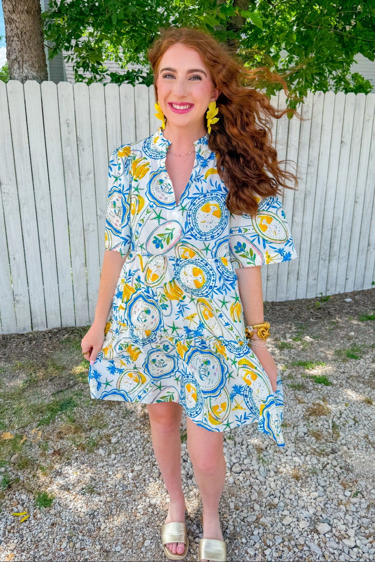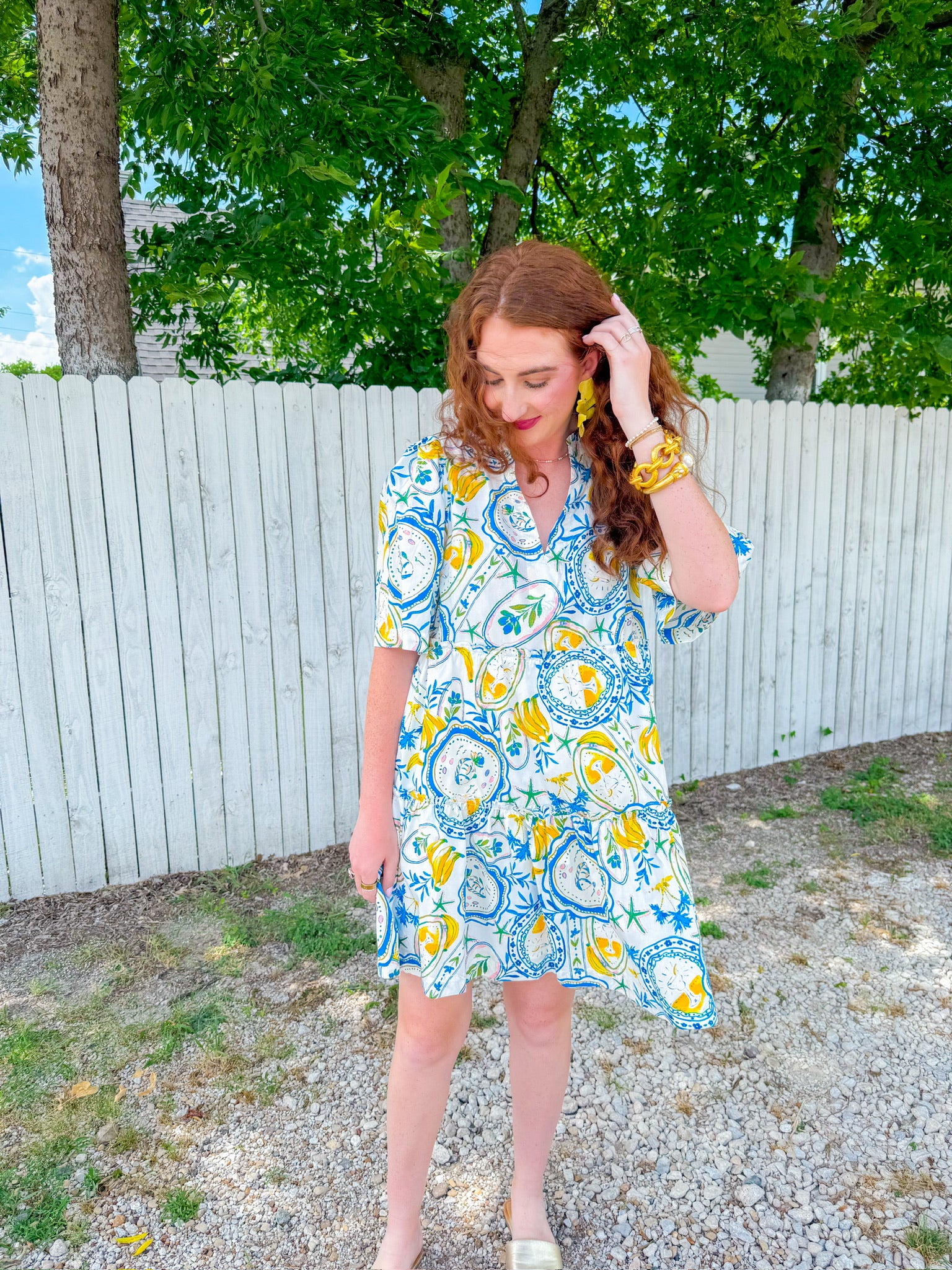 The ruffle neckline and tiered skirt keep it playful and flattering, whether you’re headed to a patio lunch or packing it for your next market stroll abroad. Just add woven sandals and a straw bag to complete the vibe.