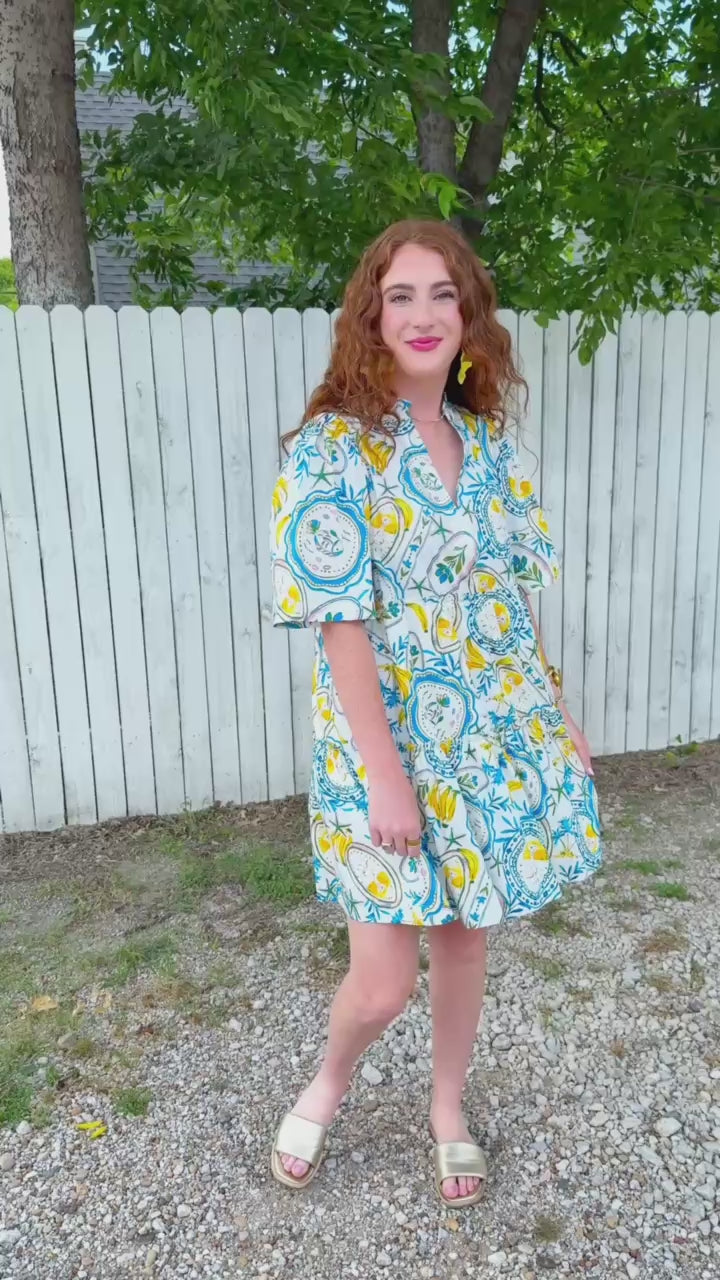 Sage Mini Dress - Blue/Yellow