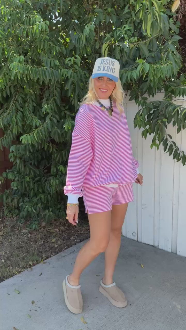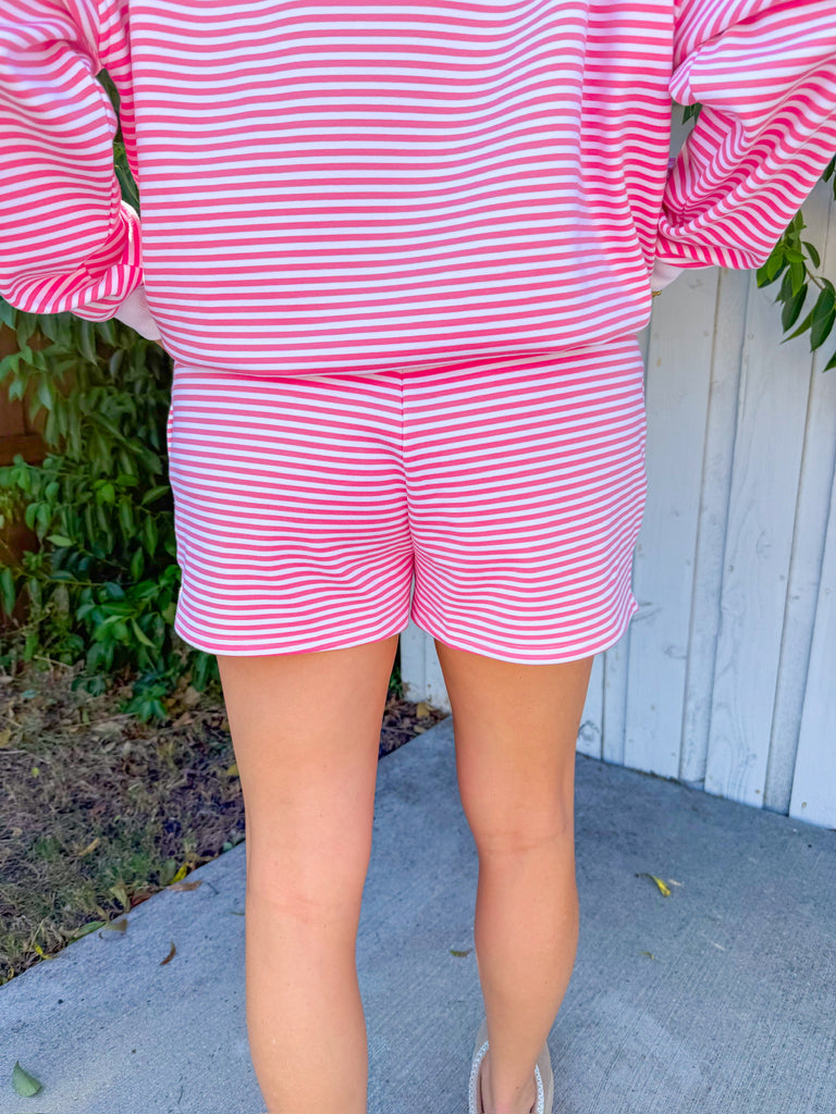 Brighten up your day with the Sally Shorts in dark pink and white stripes! These playful shorts bring a fun vibe to any casual outfit, perfect for sunny adventures and relaxed weekends.