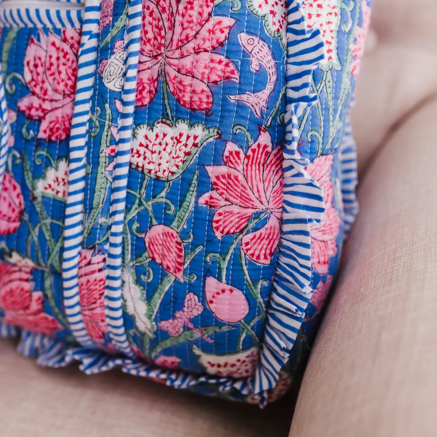 No zipper Includes an Inside pocket for phones, etc. Each piece is hand crafted and block printed by artisans, making it truly one of a kind and filled with timeless charm. The block printing process may have variations in color, printing, and fabric as part of the handmade process which is what makes each product unique.