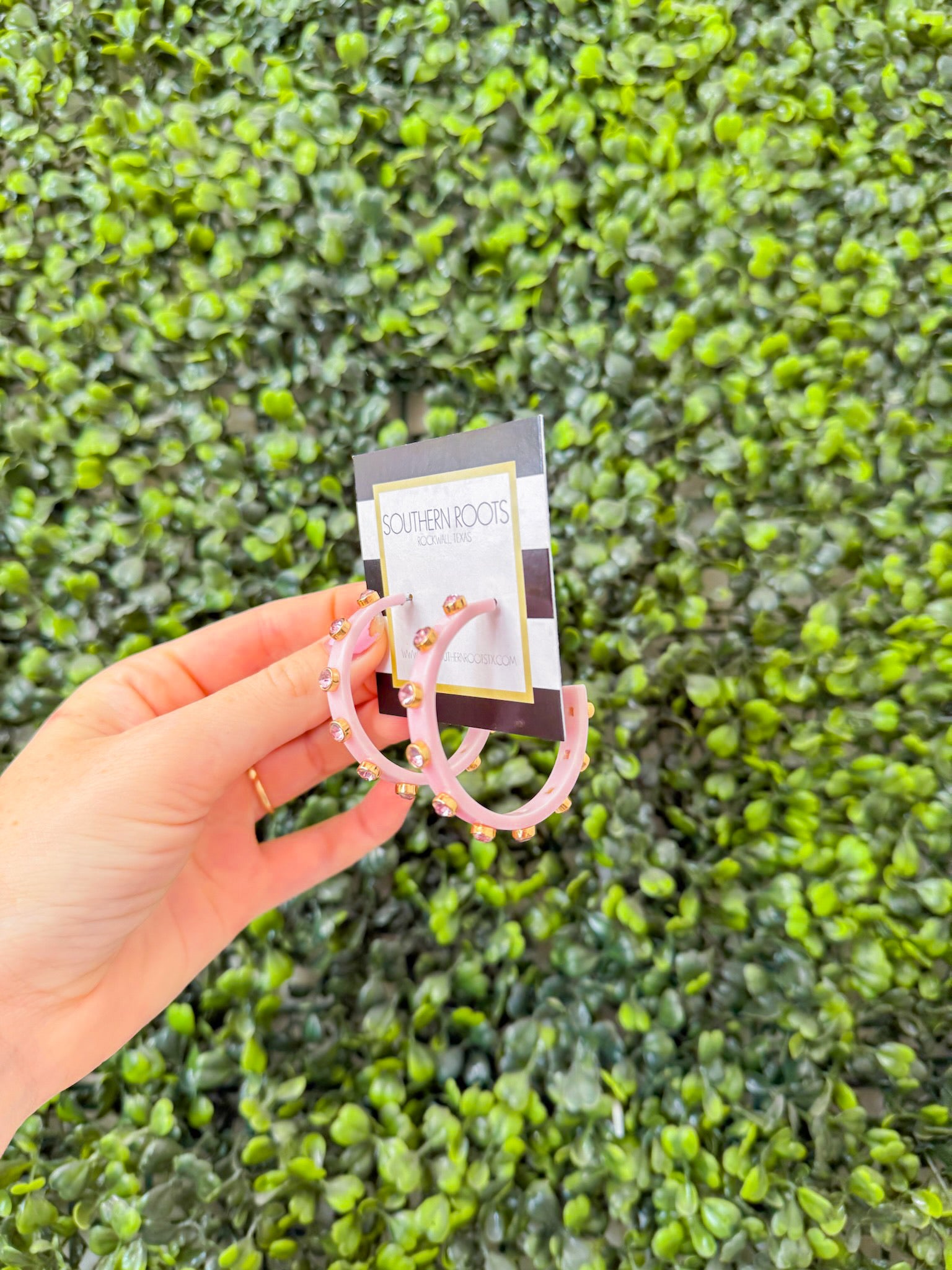 These Shine Bright Hoops in light pink add a fun pop of color to any outfit. Made from smooth acrylic, their lightweight design lets you dance all day without feeling weighed down. Perfect for brightening up casual days or adding a playful twist to your go-to look.