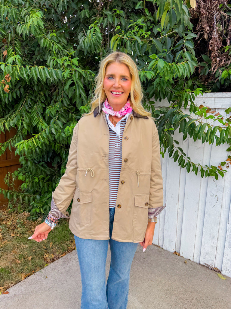 Get ready to turn heads with the Sign Of The Season Jacket in tan! This jacket pairs cozy warmth with stylish brown leather trim for a look that’s both classic and a little bit sassy.