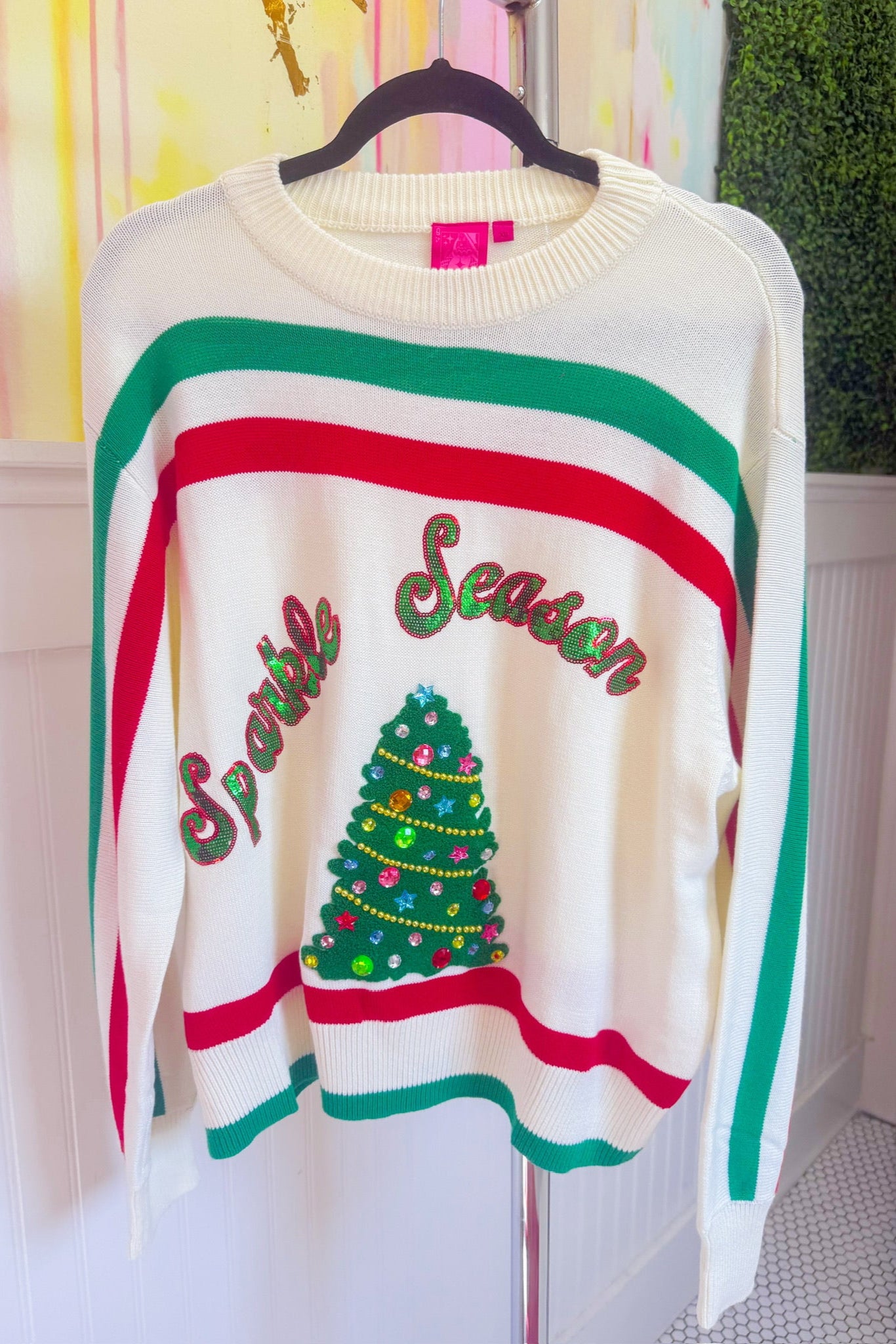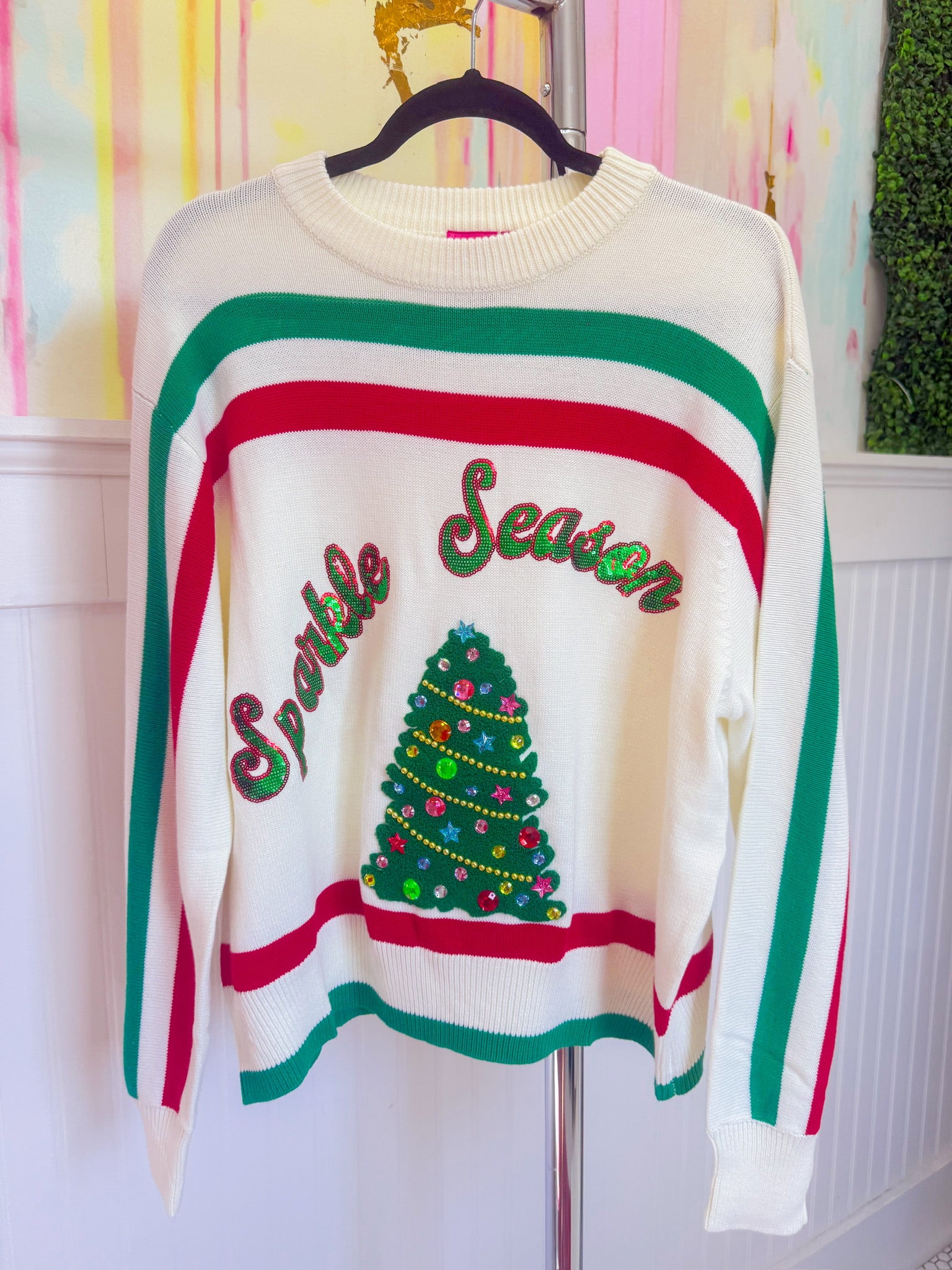 Sparkle Season Sweater - White/Red/Green