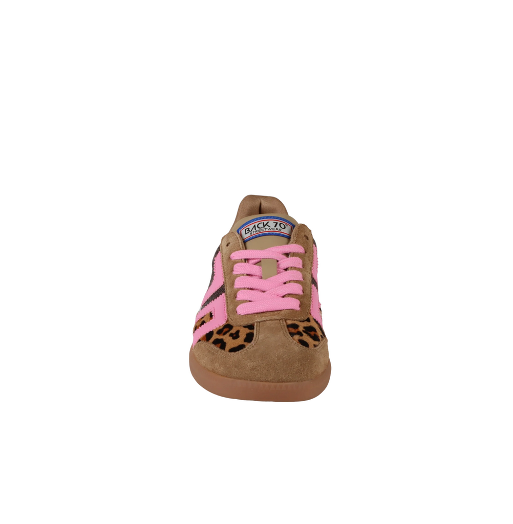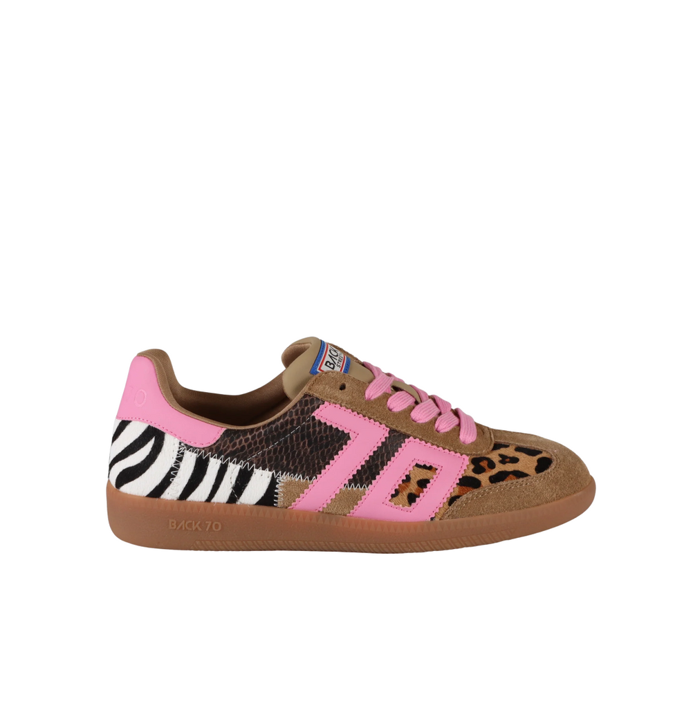 Say hello to the most bold iconic sneakers of the season. Animal print always makes a statement, and Squid takes it to the next level with a patchwork of rich leathers and a distinctly girly punch featuring Back 70's signature vintage icon in bright lipstick pink. If fashion were time, this is the moment you've been waiting for.