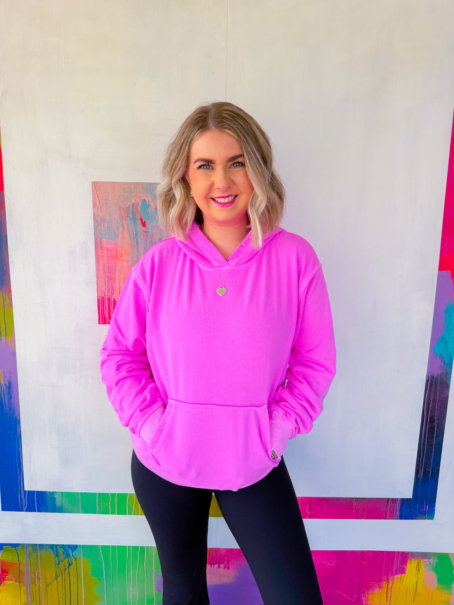 The plush fleece lining keeps you warm and snug, whether you're lounging at home or stepping out in style. Soft, comfortable, and unapologetically fun—this is the hoodie that makes you smile every time you put it on.
