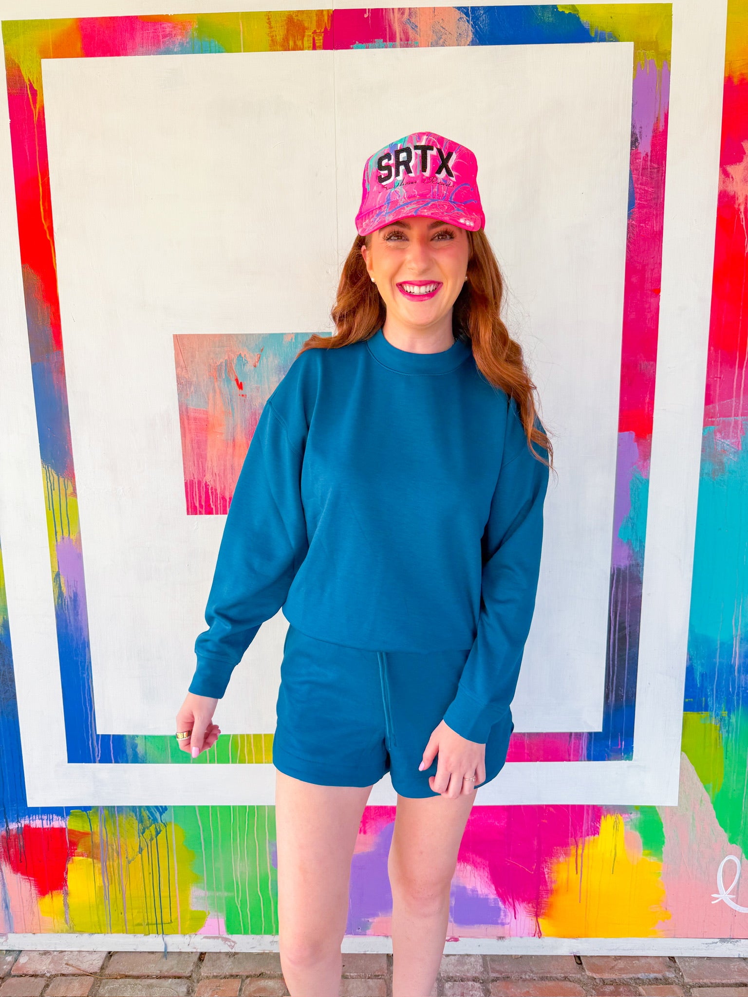 Swing into effortless style with this charming two-piece set featuring a long-sleeve top and coordinating shorts. The teal hue brings a fresh, versatile pop to your wardrobe, perfect for casual outings or relaxed weekends.