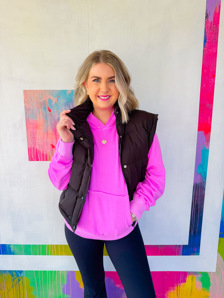 Featuring a hybrid zipper and button closure for versatile styling, this vest delivers warmth without the bulk.