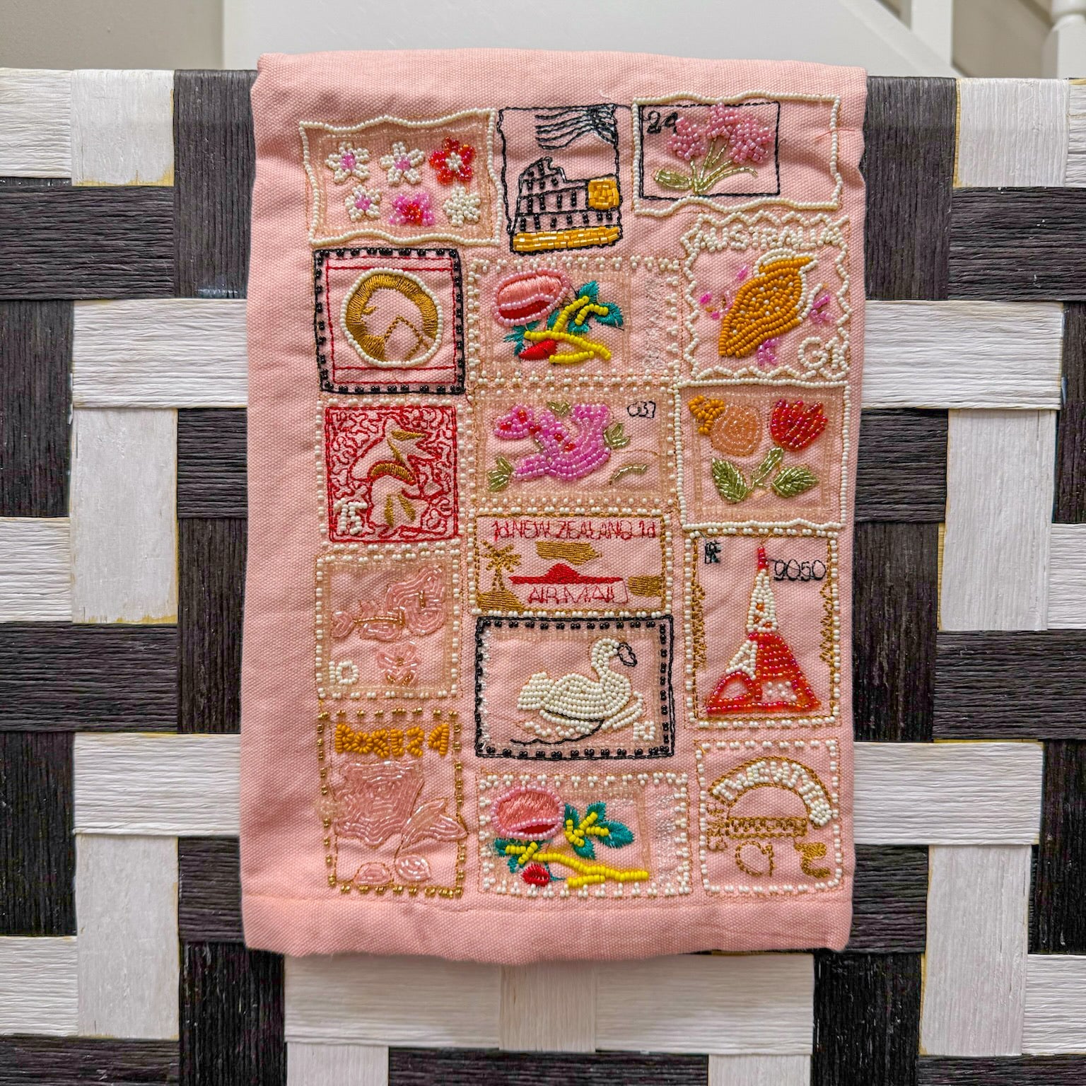 Stamps Beaded Tea Towel