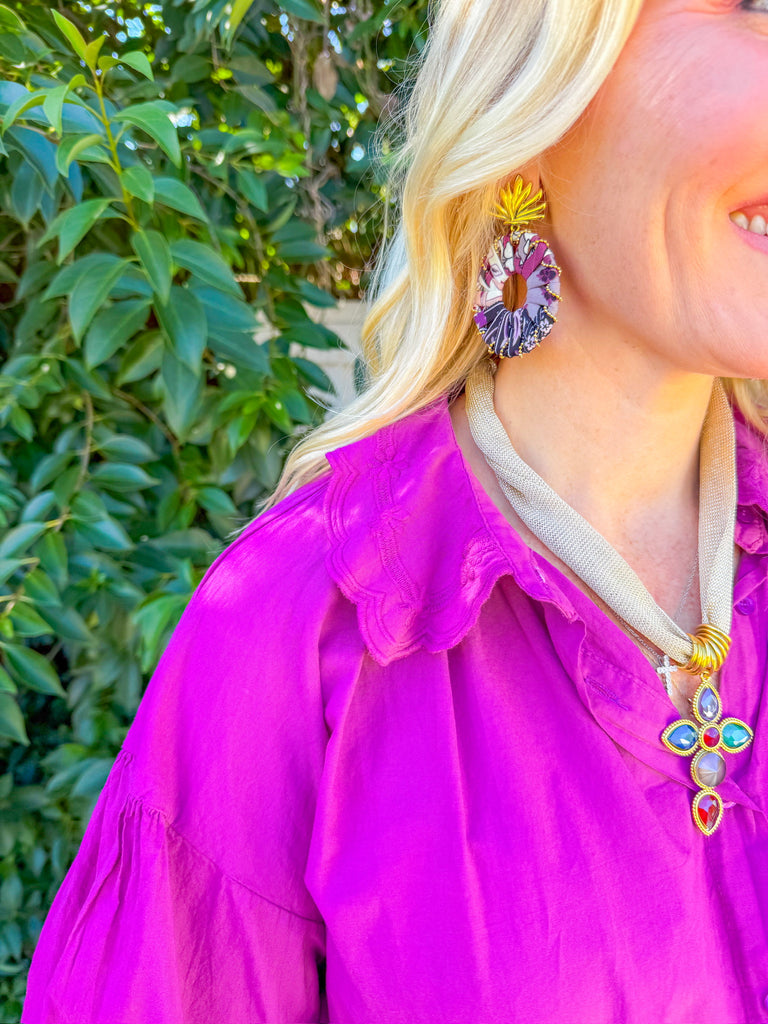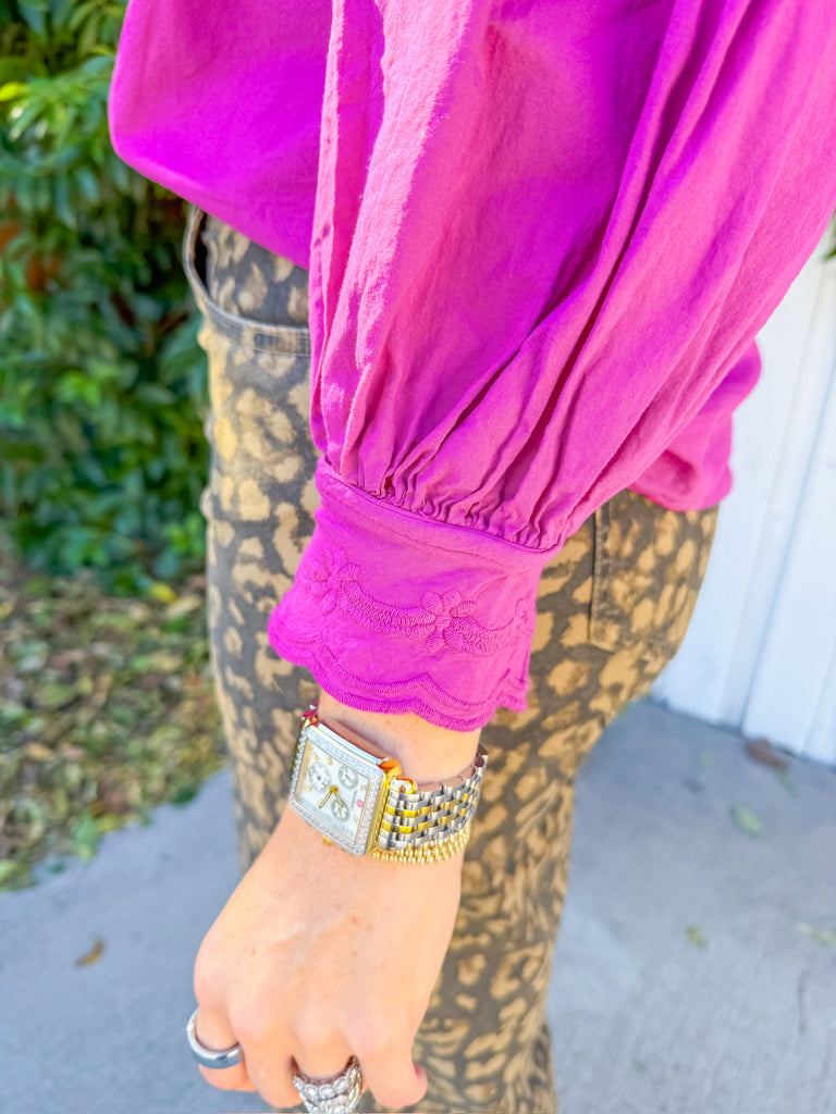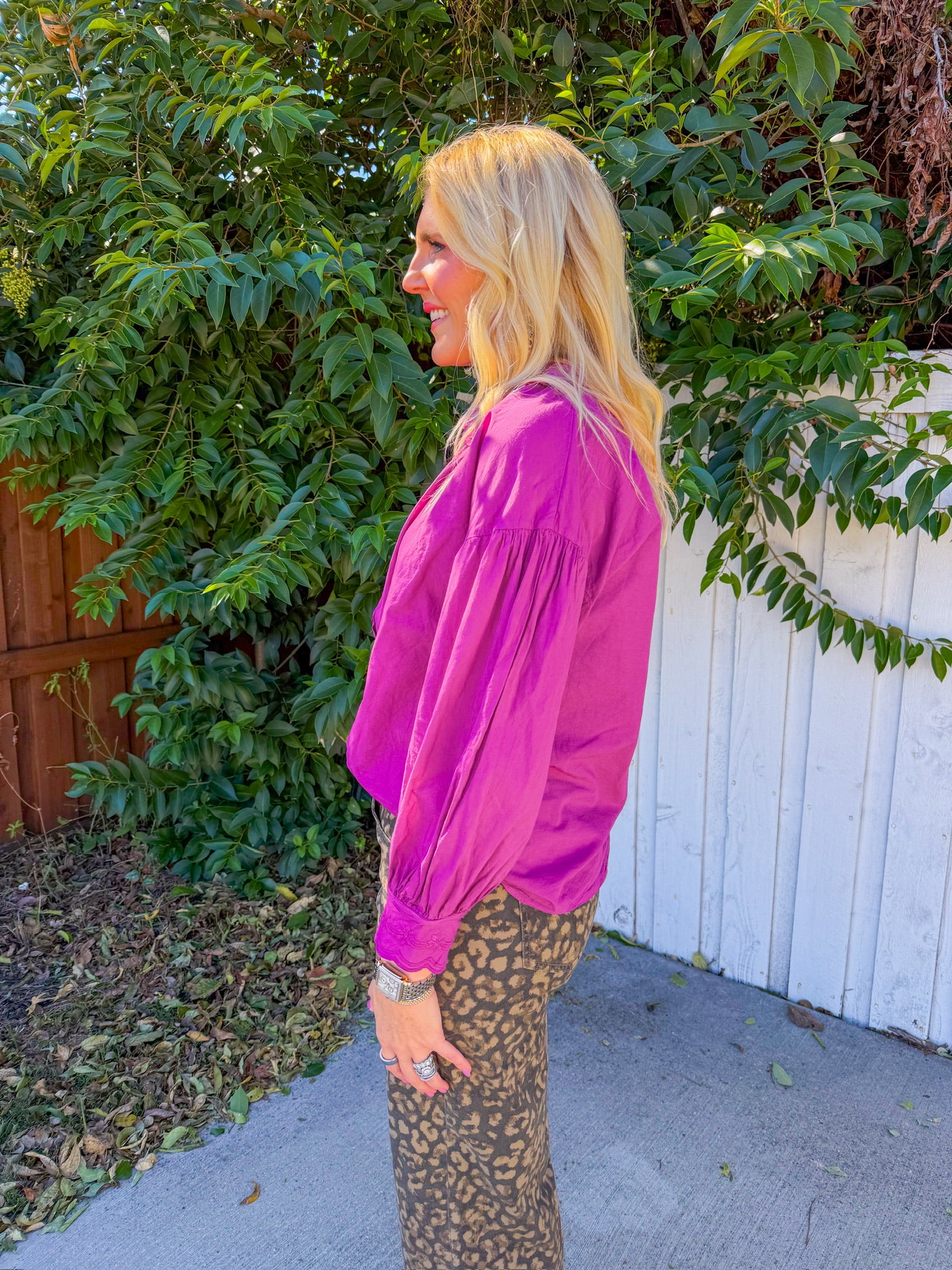 Slip into effortless style with the Stay Awhile Top in purple. This charming blouse brings a pop of color to your everyday wardrobe while keeping comfort front and center.