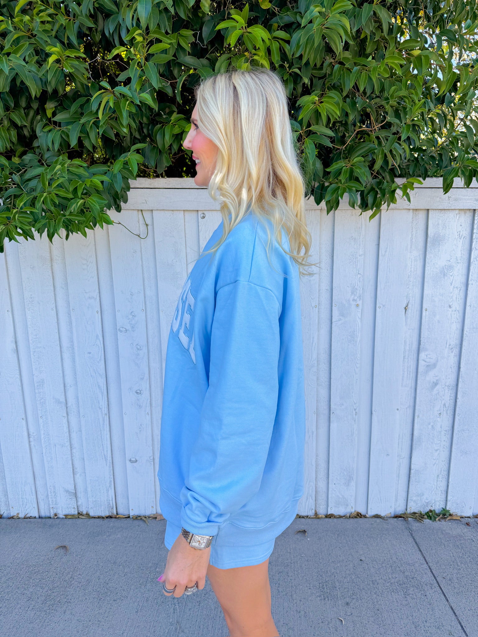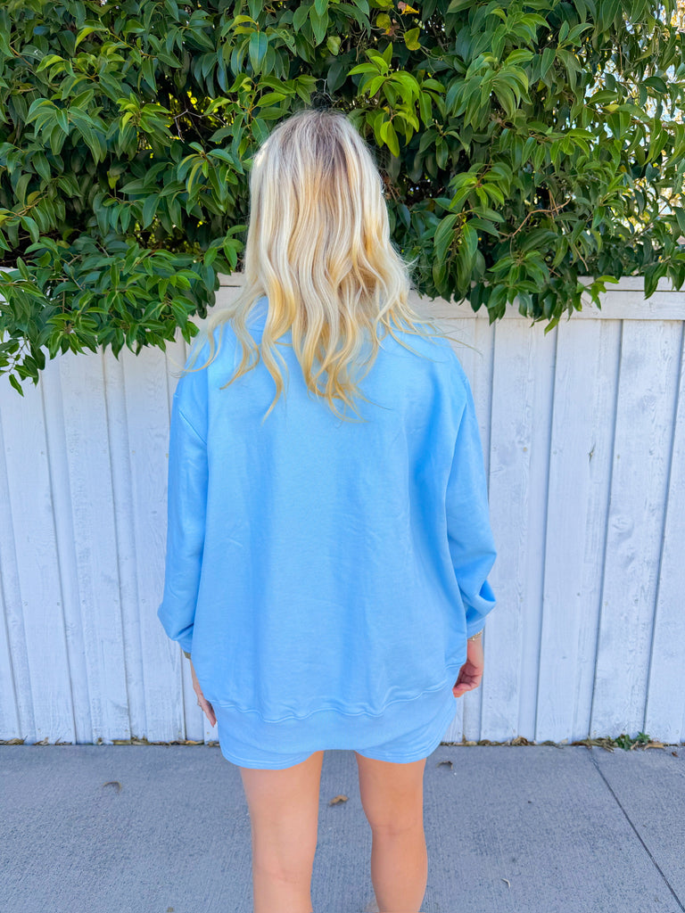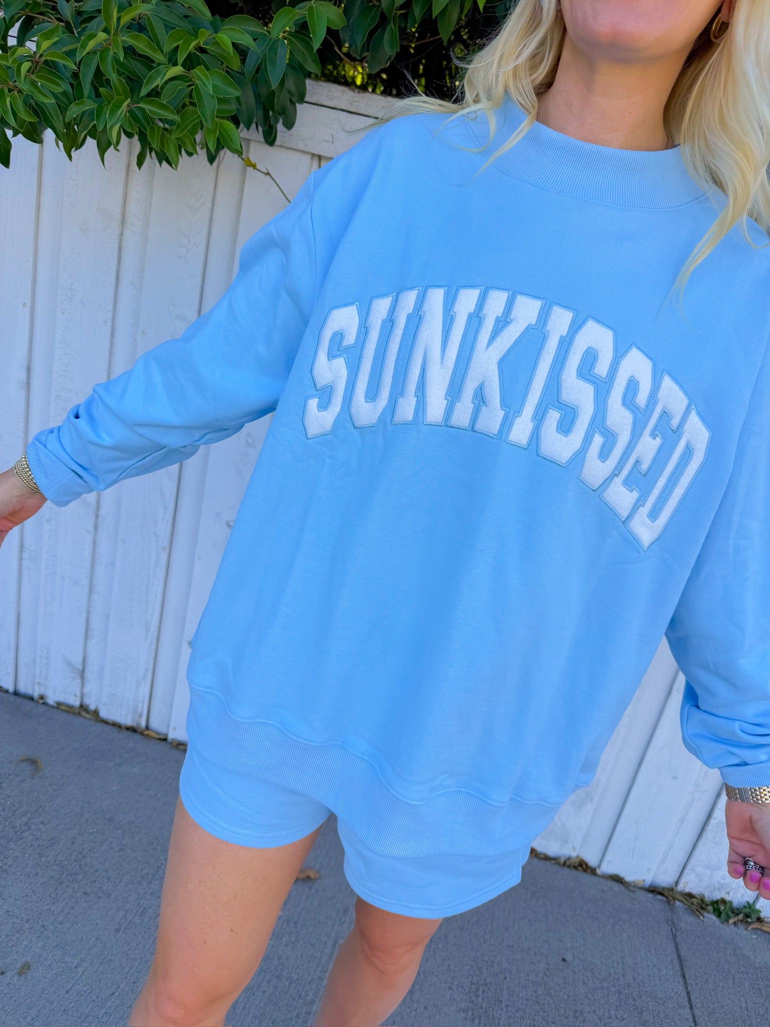 Catch those golden vibes in our Sunkissed Sweatshirt. This cozy blue mock neck features "sunkissed" emblazoned across the front—a laid-back reminder to embrace the warmth and glow of everyday moments.