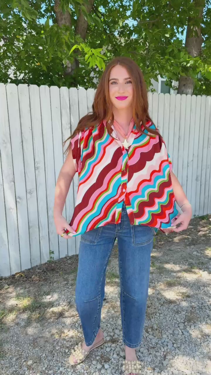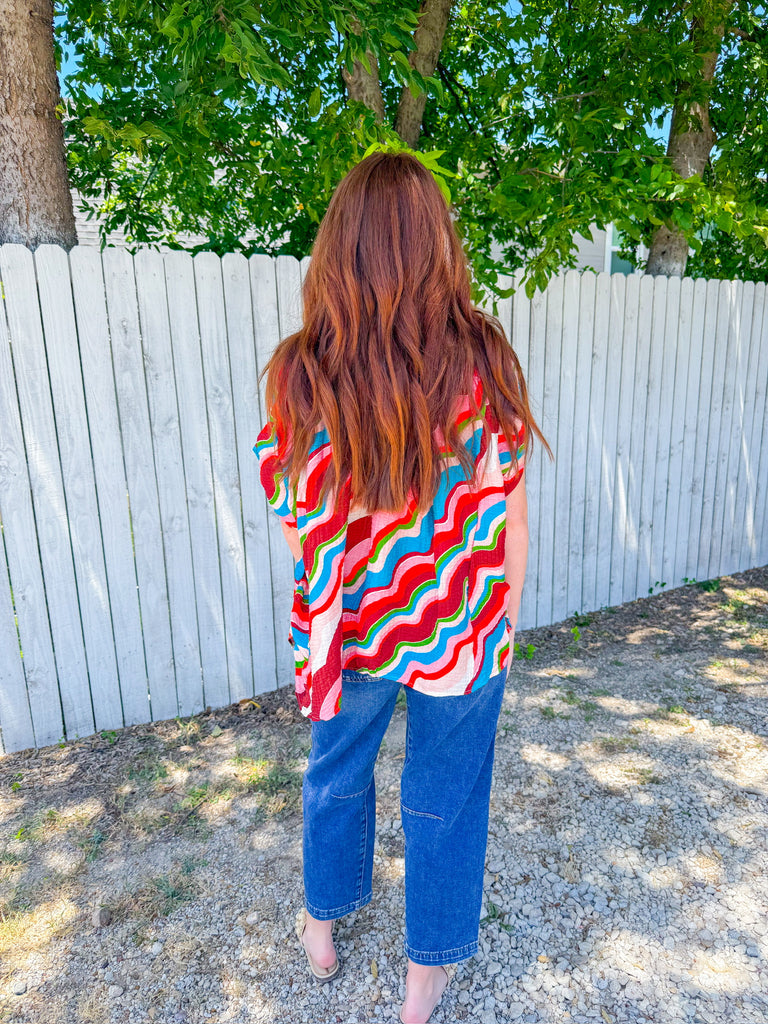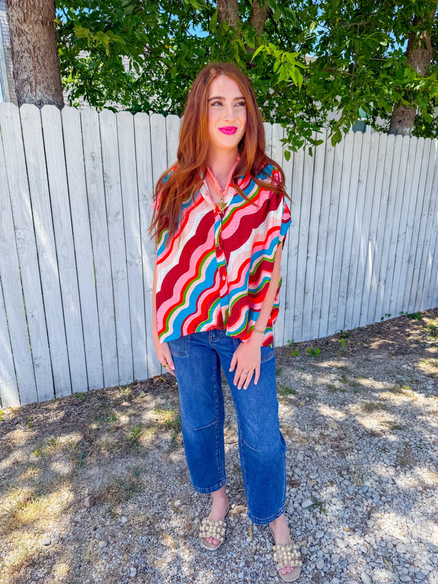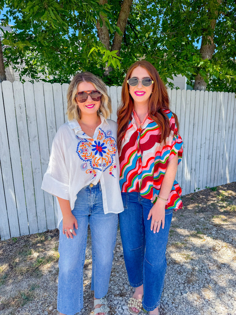 Style it with your favorite denim or a funky skirt and let the colors do all the talking—perfect for concerts, brunches, or just brightening up a regular Tuesday.