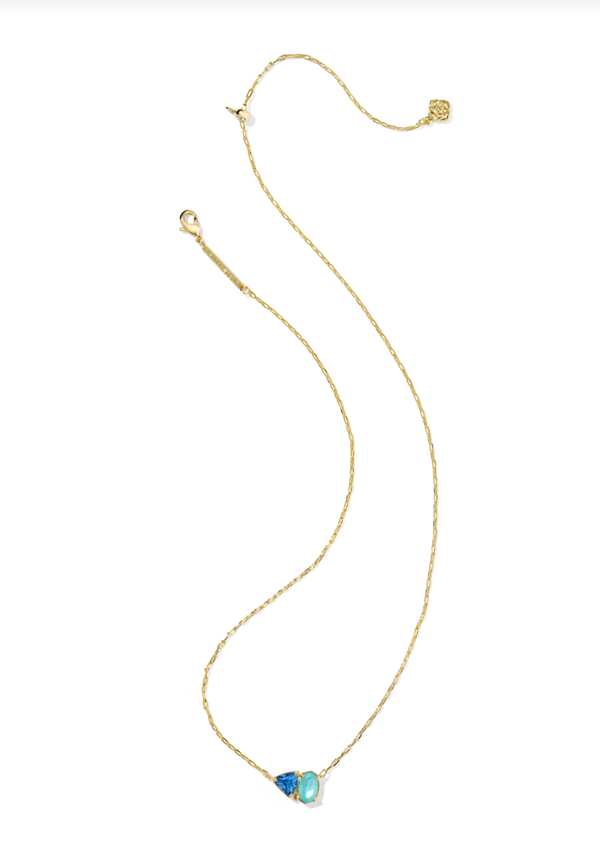 Tatum Short Pendant Necklace - Gold/Light Blue Mix