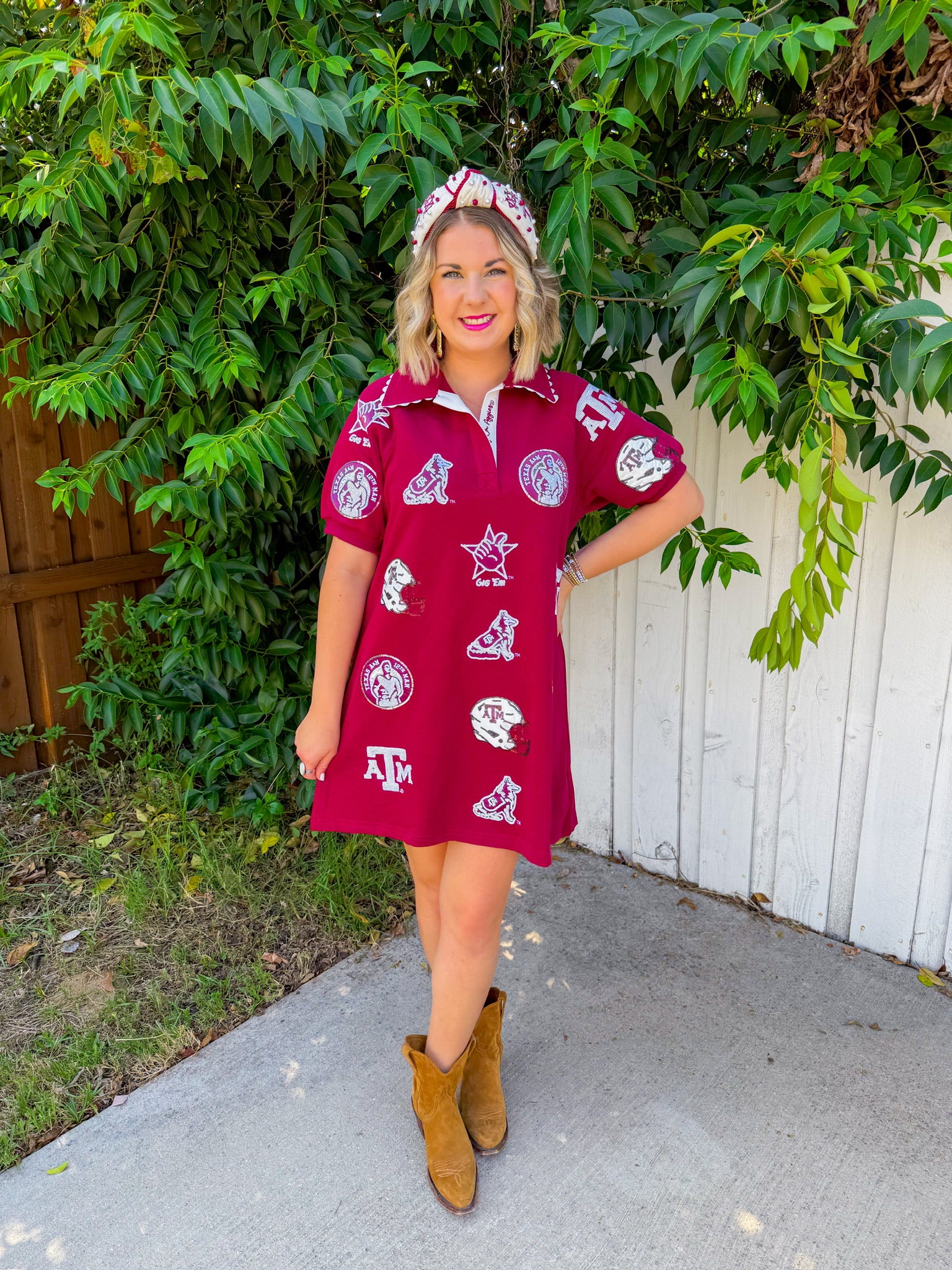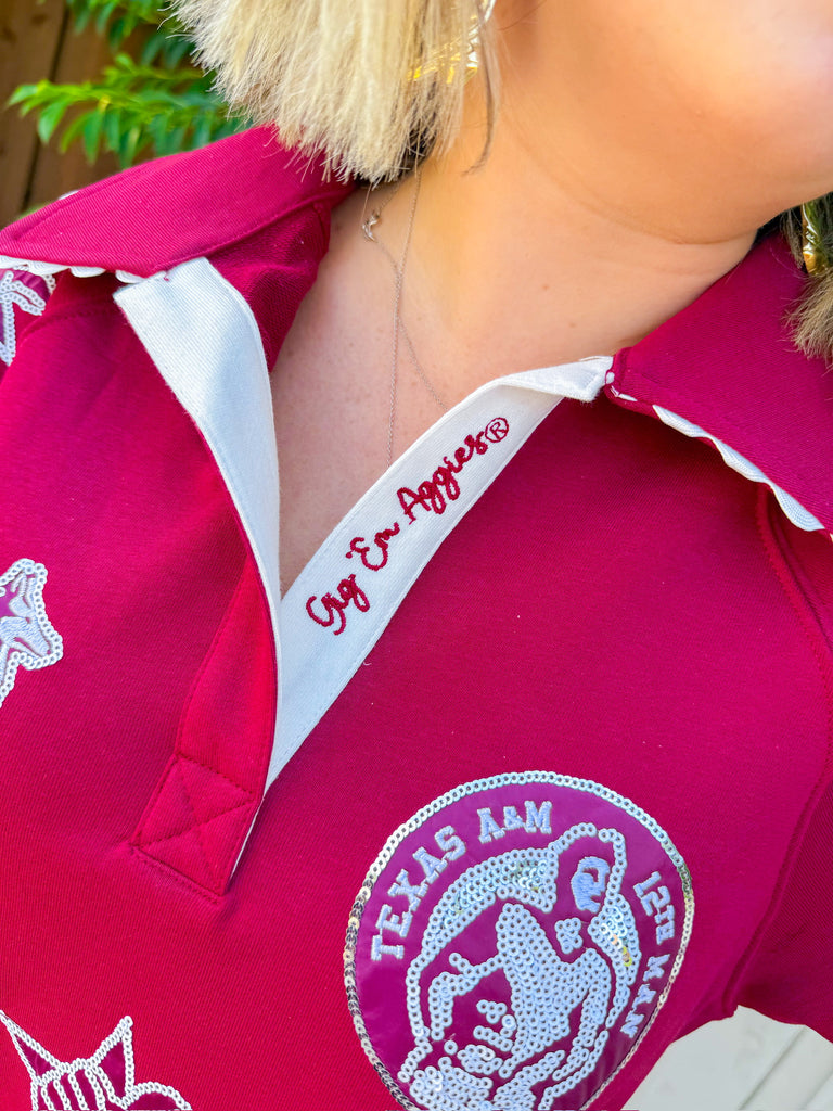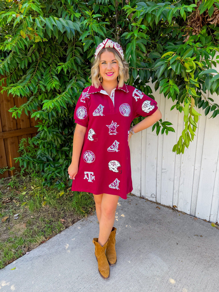 Show your Aggie spirit in style with this Texas A&M Logo Patch Dress in maroon. This playful mini dress features a sparkling sequin icon that catches every eye, perfect for game days or campus events.