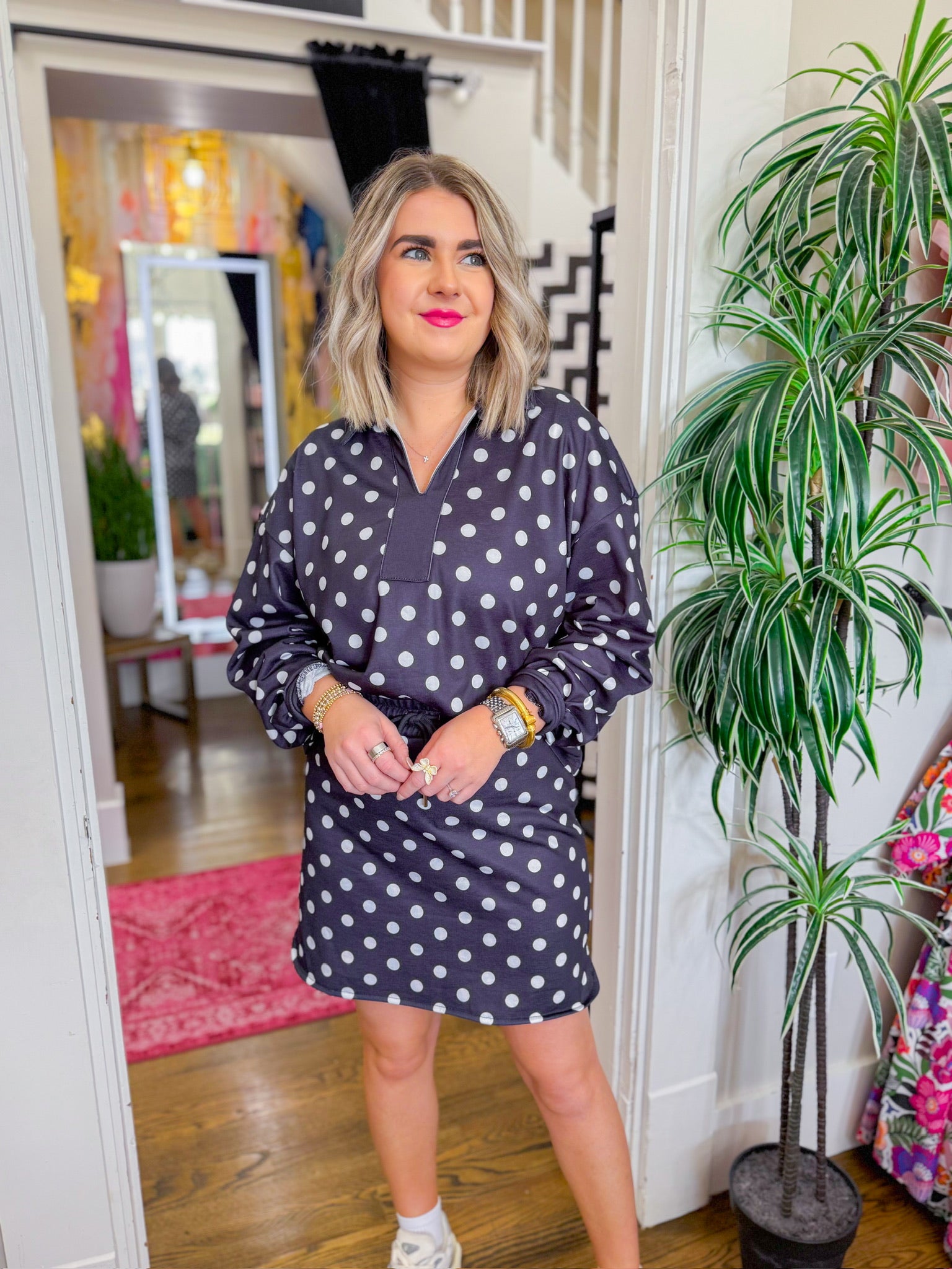 The classic polka dot pattern brings a touch of vintage-inspired fun to your wardrobe, while the coordinated two-piece design makes getting dressed a breeze.