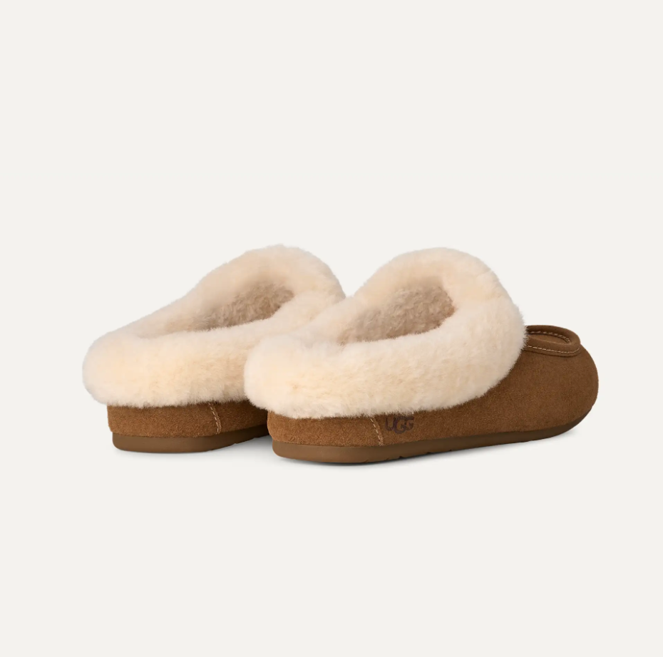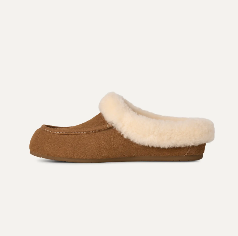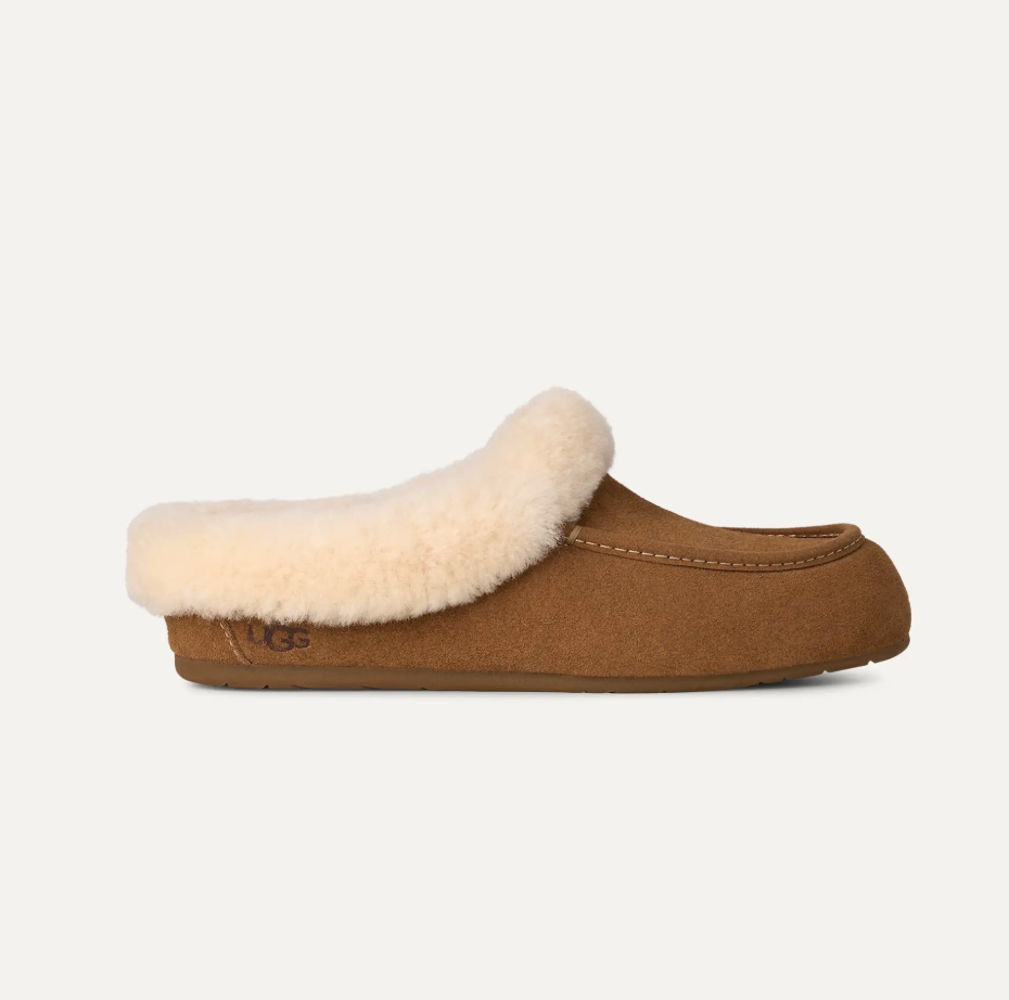 This is luxury seen through the UGG® lens. Our Ansley Mule is an all-new take on heritage elements, from the premium sheepskin collar to the smooth suede upper. It has a soft UGGplush™ lining and a rubber outsole that can be worn indoors and out.