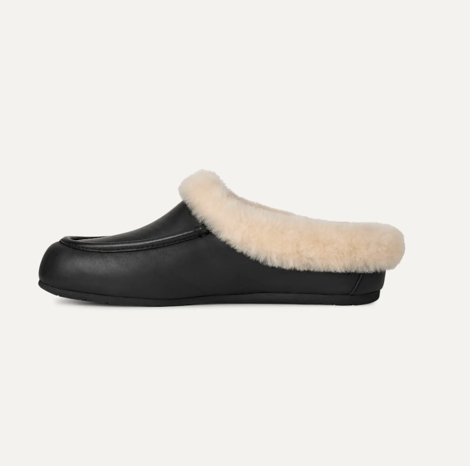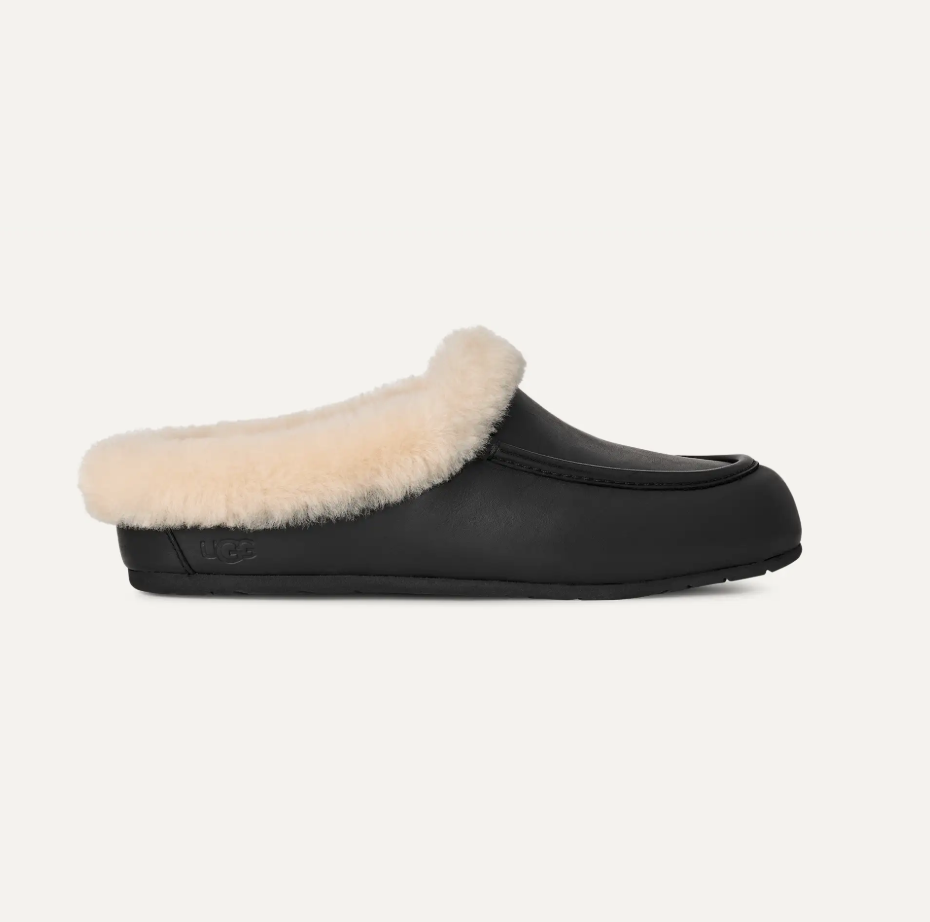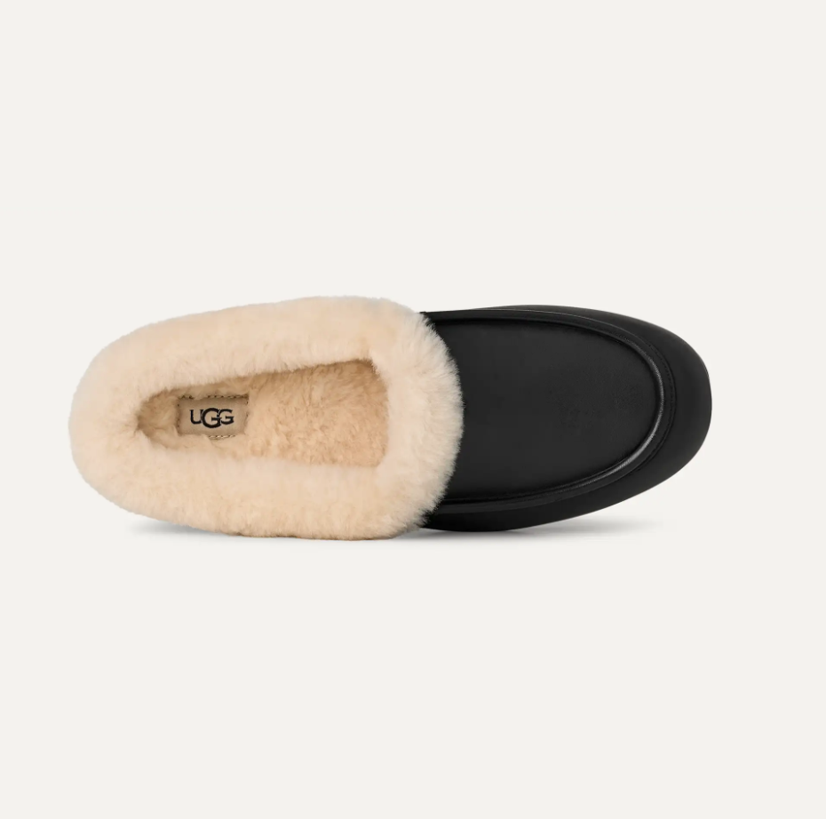 This is luxury seen through the UGG® lens. Our Ansley Mule LTHR is an all-new take on heritage elements, from the premium sheepskin collar to the smooth leather upper. It has a soft UGGplush™ lining and a rubber outsole that can be worn indoors and out.