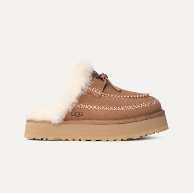 It's everything you love about the Disquette with added UGG heritage. Wear them indoors and out. The Disquette Alpine features a lightweight platform made of sugarcane EVA. We've lined this slipper with soft sheepskin and our cozy UGGplush blend. The suede upper is styled with our signature Twin Seam, UGGbraid, and fixed leather laces.