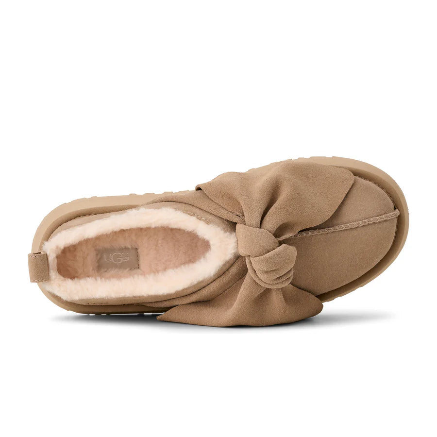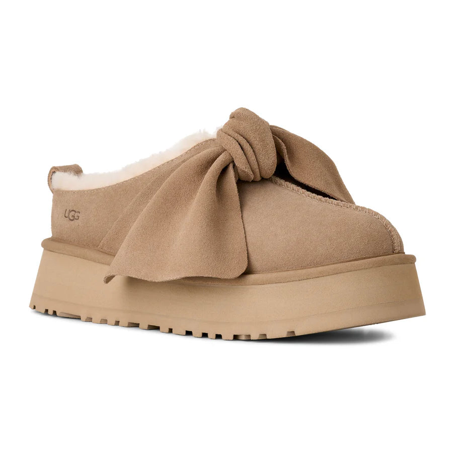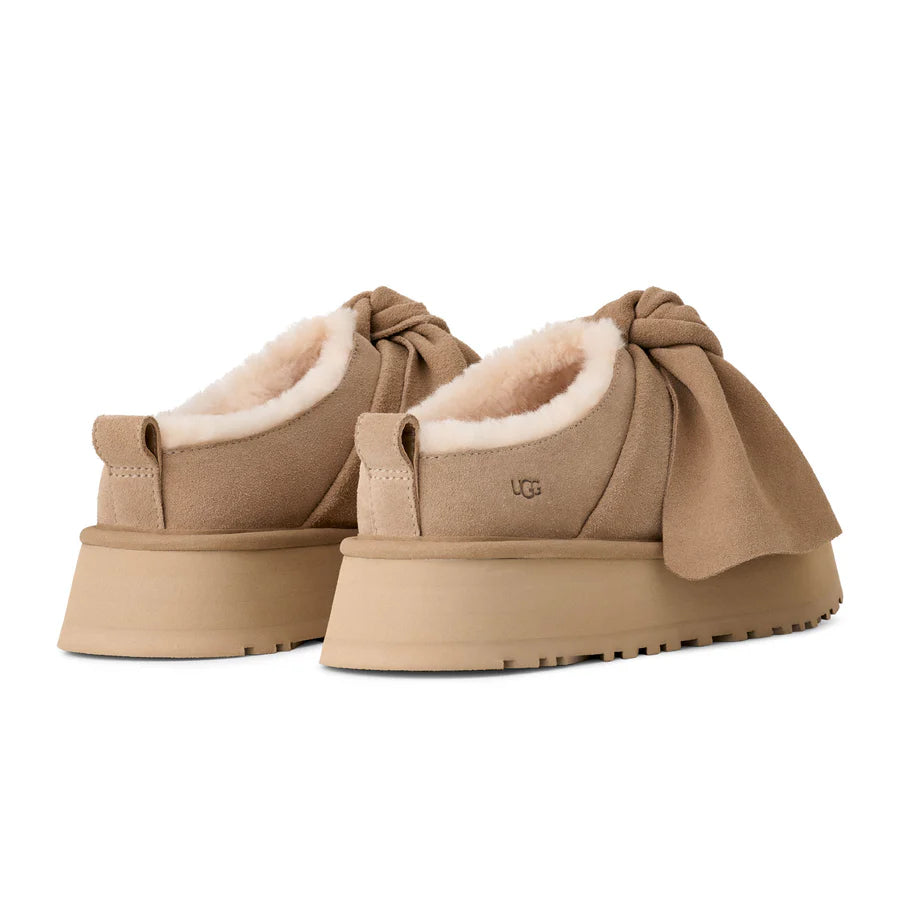 Our Classic Mini Boot got reimagined into our Classic Mini Bow. More comfort, more height, and of course, a bow! Whether you wear it indoors or outside, with socks or without, you'll be surrounded by the naturally moisture-wicking sheepskin lining and insole. It features a 1.75" platform from lightweight sugarcane EVA and a smooth suede upper with an easy, open back.