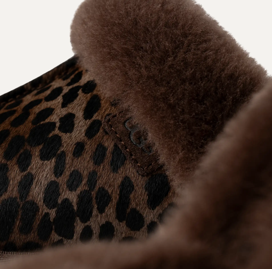- Sheepskin collar, Spotted print, Calf hair vamp