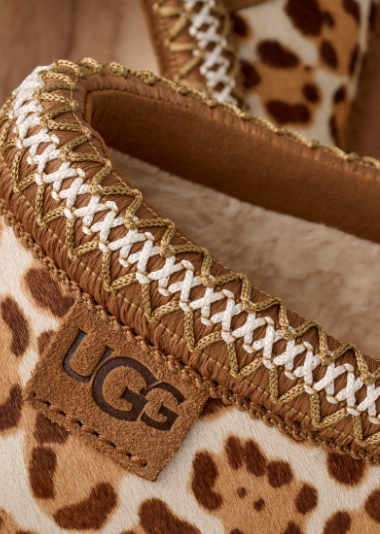 The call of the wild. Our Tazz Plains is our essential Tazz II, suited up for everyday adventures. We know you love a style moment, and our animal print cow-hair upper brings it. Featuring your favorite Tazz II construction, including a lightweight EVA platform sole, cushioned UGGplush™ footbed, upcycled wool-blend lining, and UGGbraid trim, this slip-on packs a comfy-cool factor that's undeniably fresh.